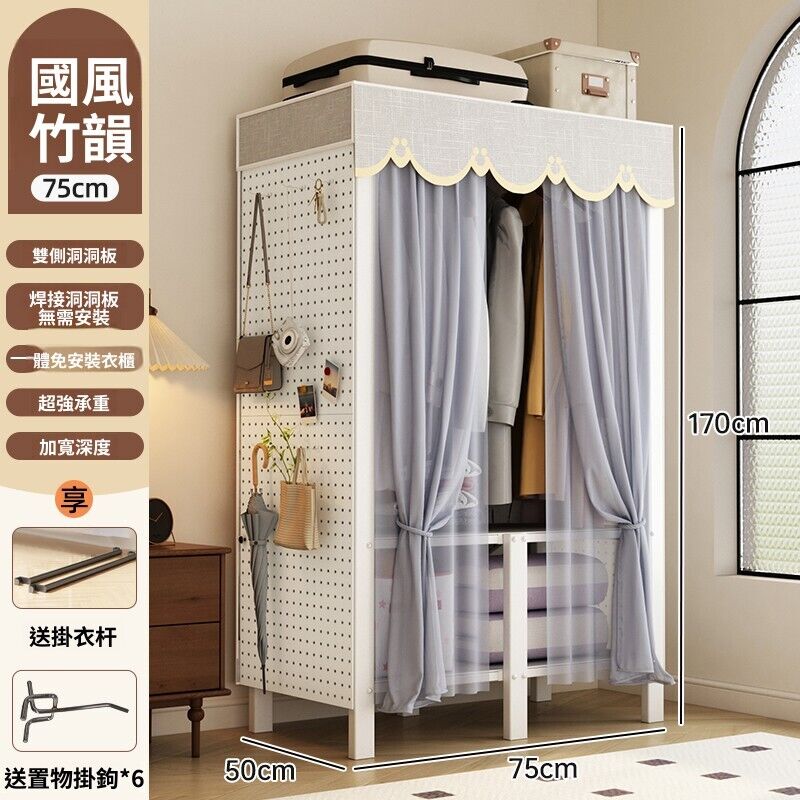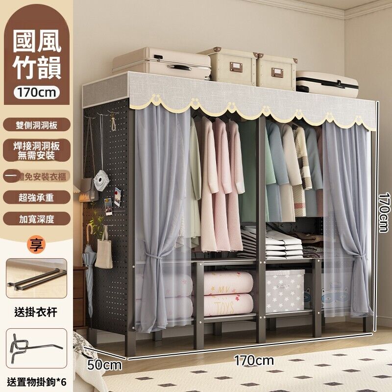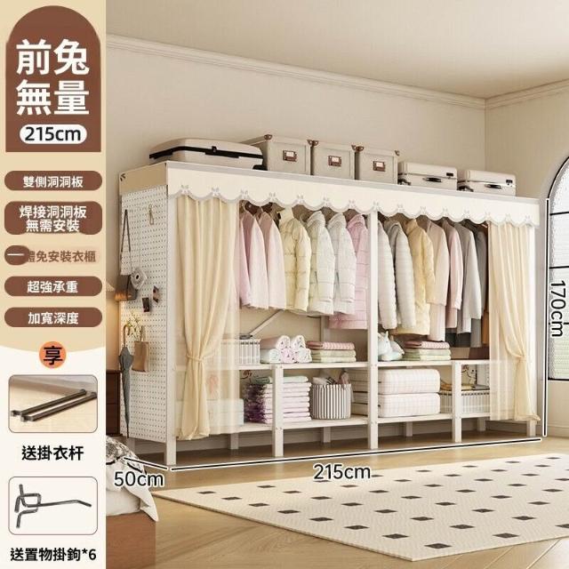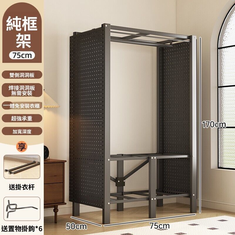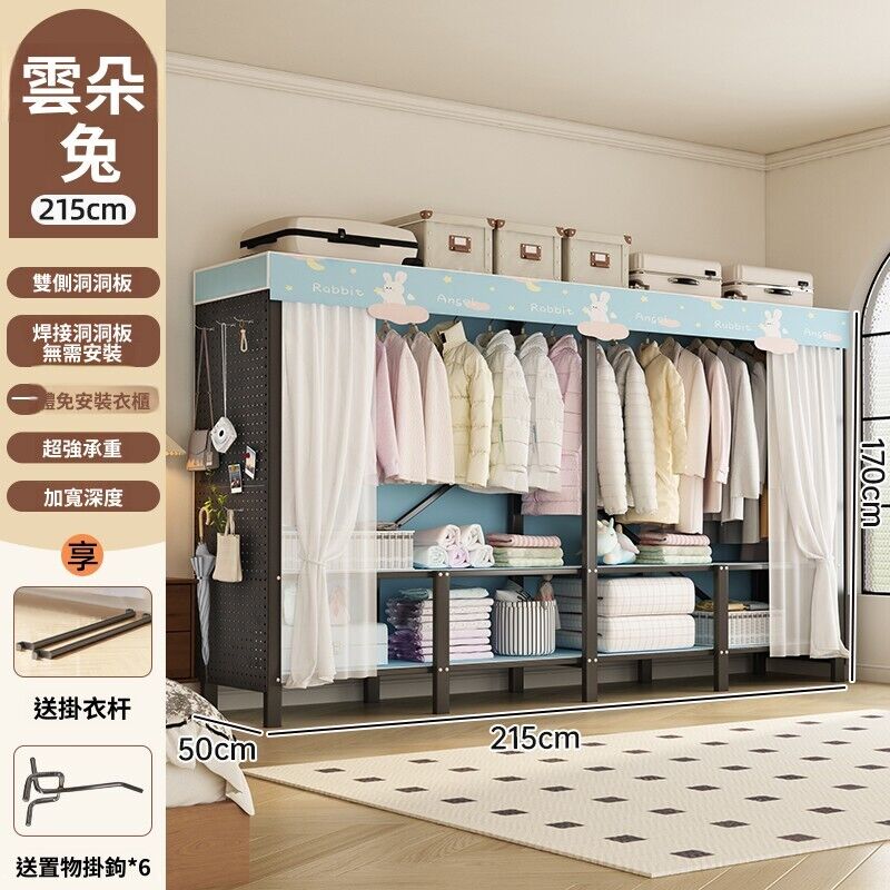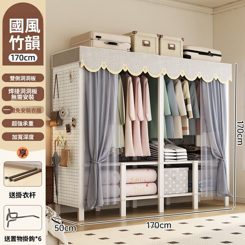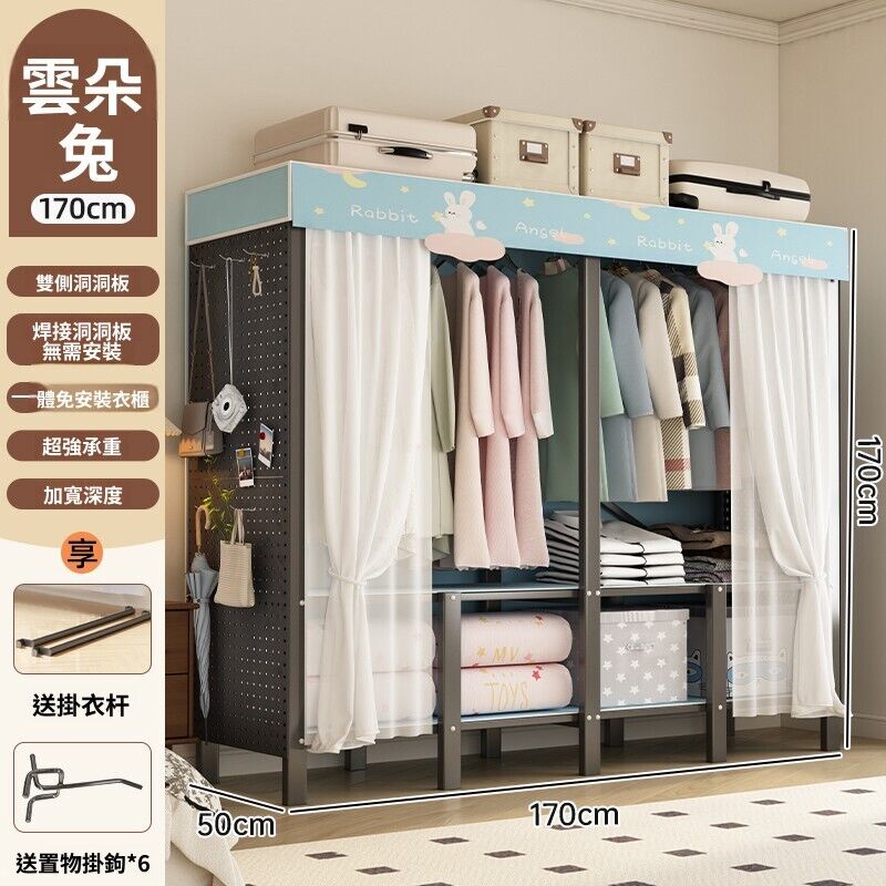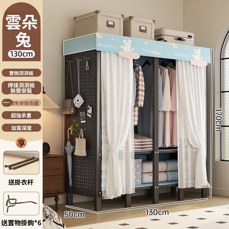 衣櫃家用臥室免安裝洞洞板簡易布衣櫃出租房全鋼架組裝衣櫥25新款 34a