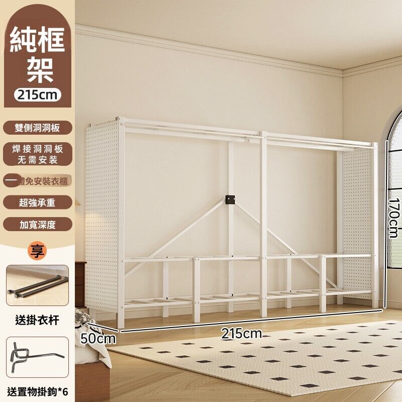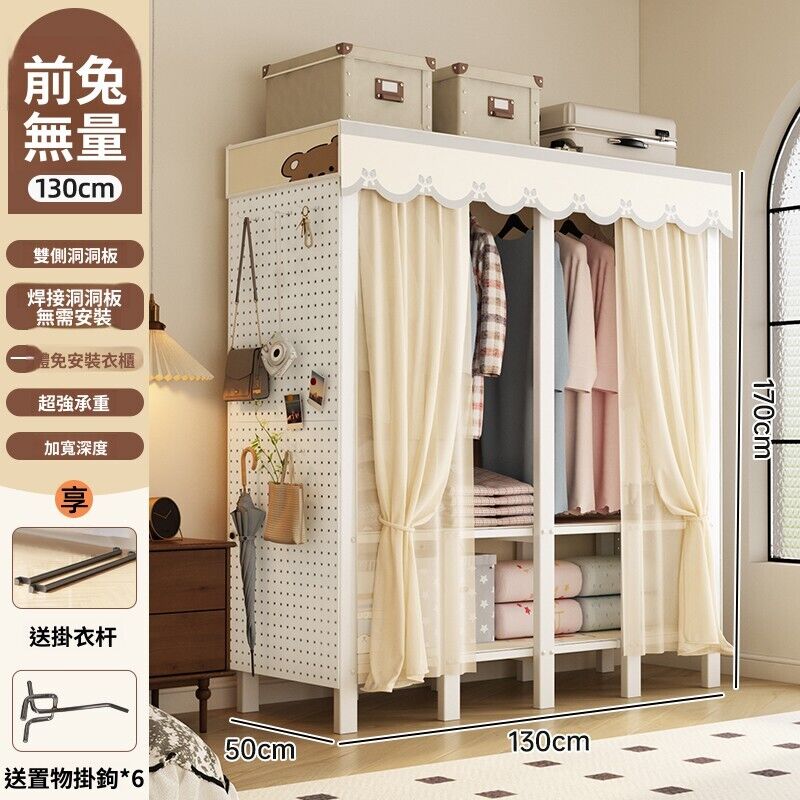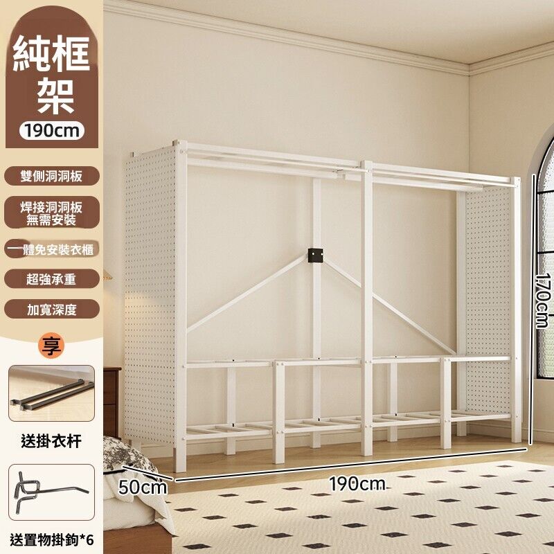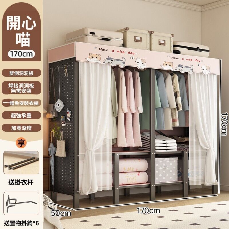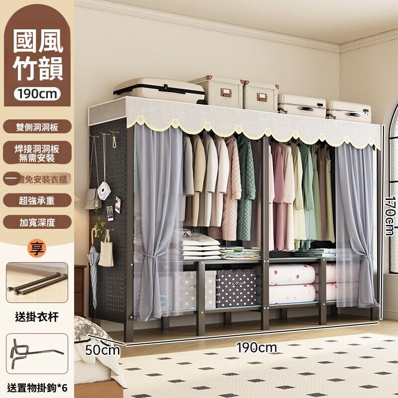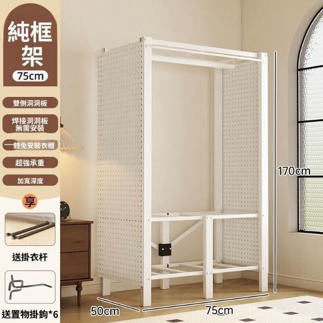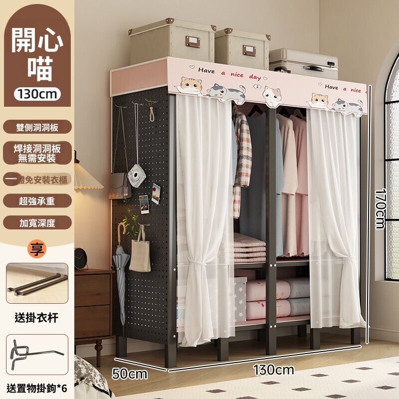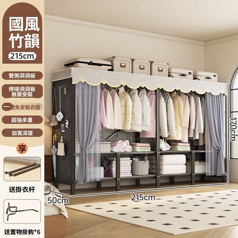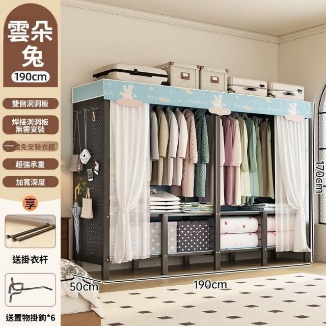 衣櫃家用臥室免安裝洞洞板簡易布衣櫃出租房全鋼架組裝衣櫥25新款 34a