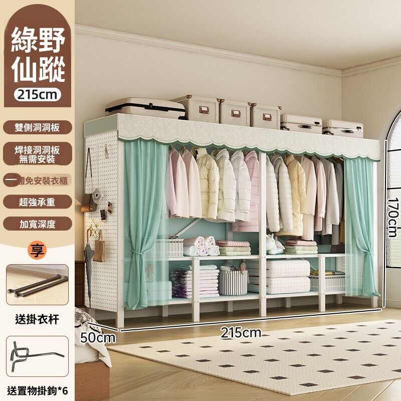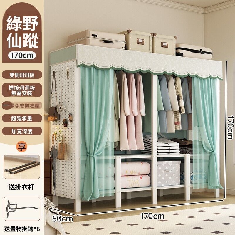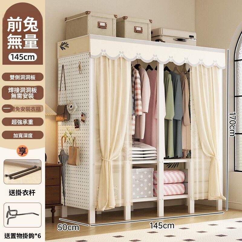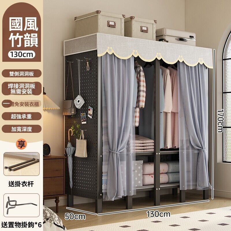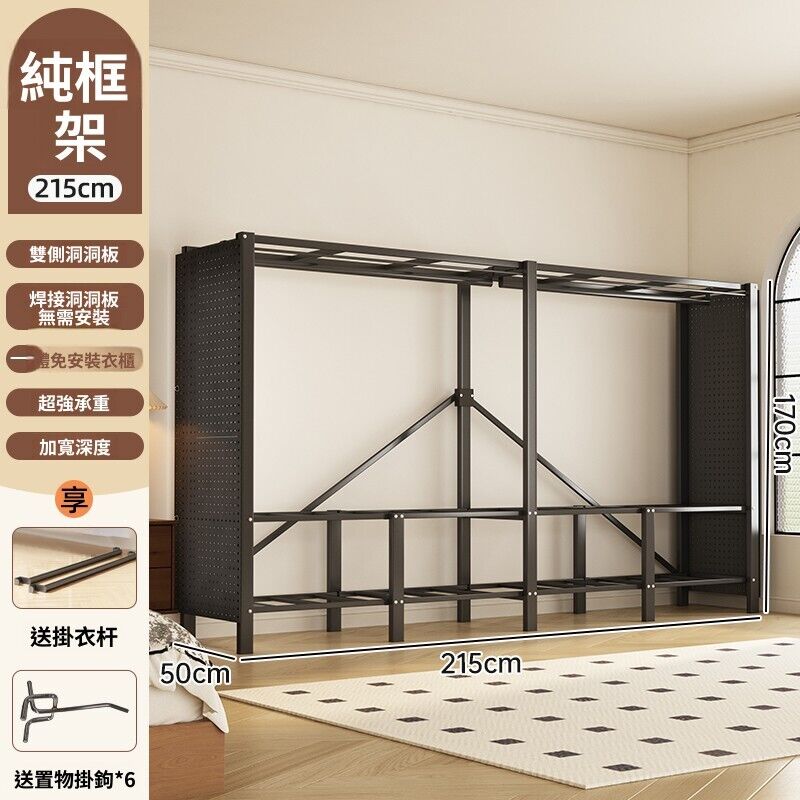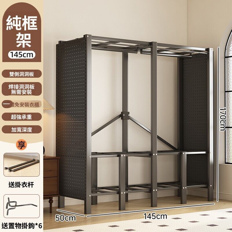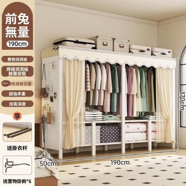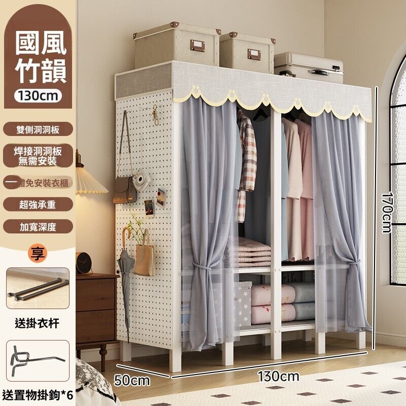 衣櫃家用臥室免安裝洞洞板簡易布衣櫃出租房全鋼架組裝衣櫥25新款 34a