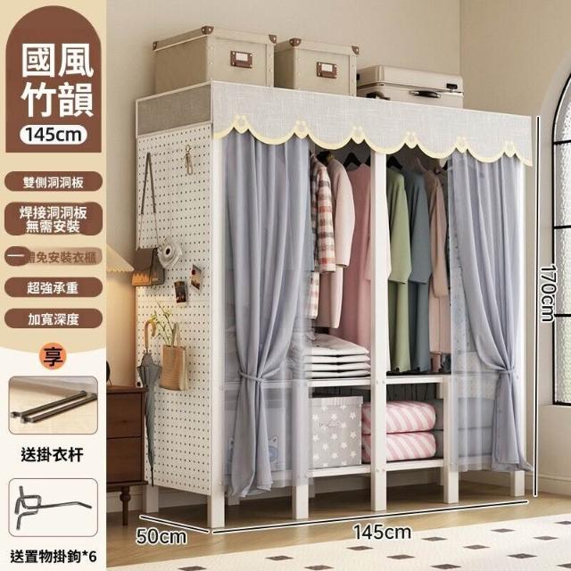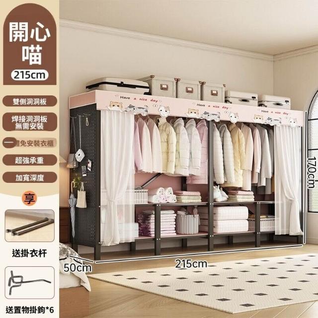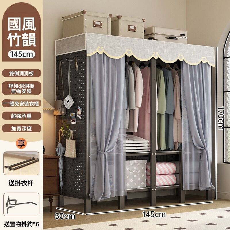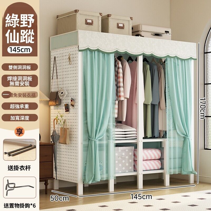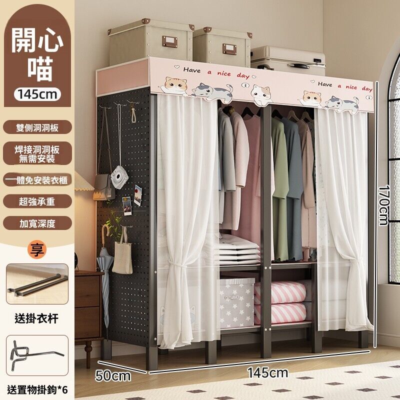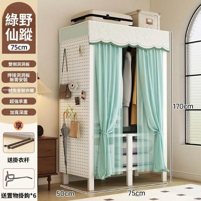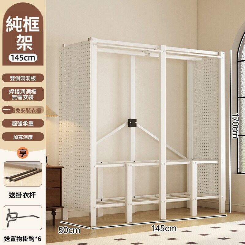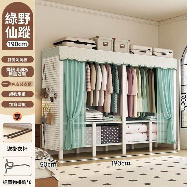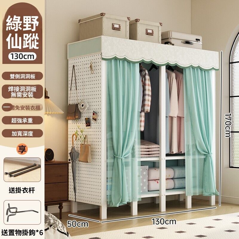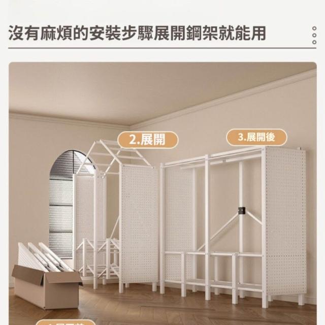 衣櫃家用臥室免安裝洞洞板簡易布衣櫃出租房全鋼架組裝衣櫥25新款 34a