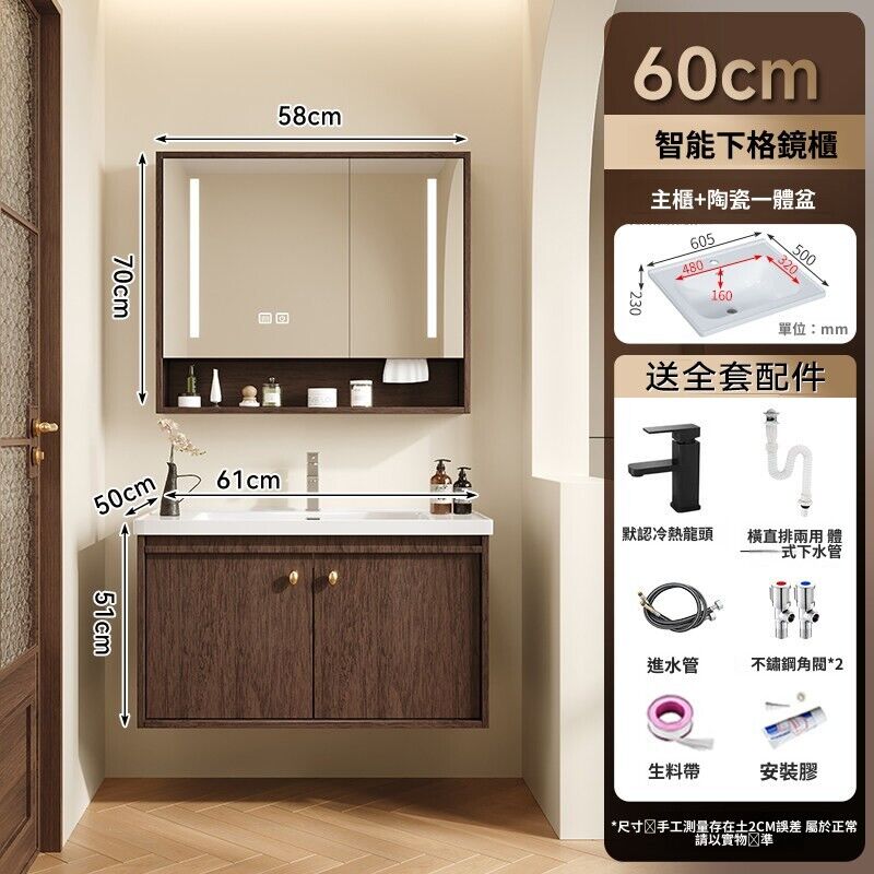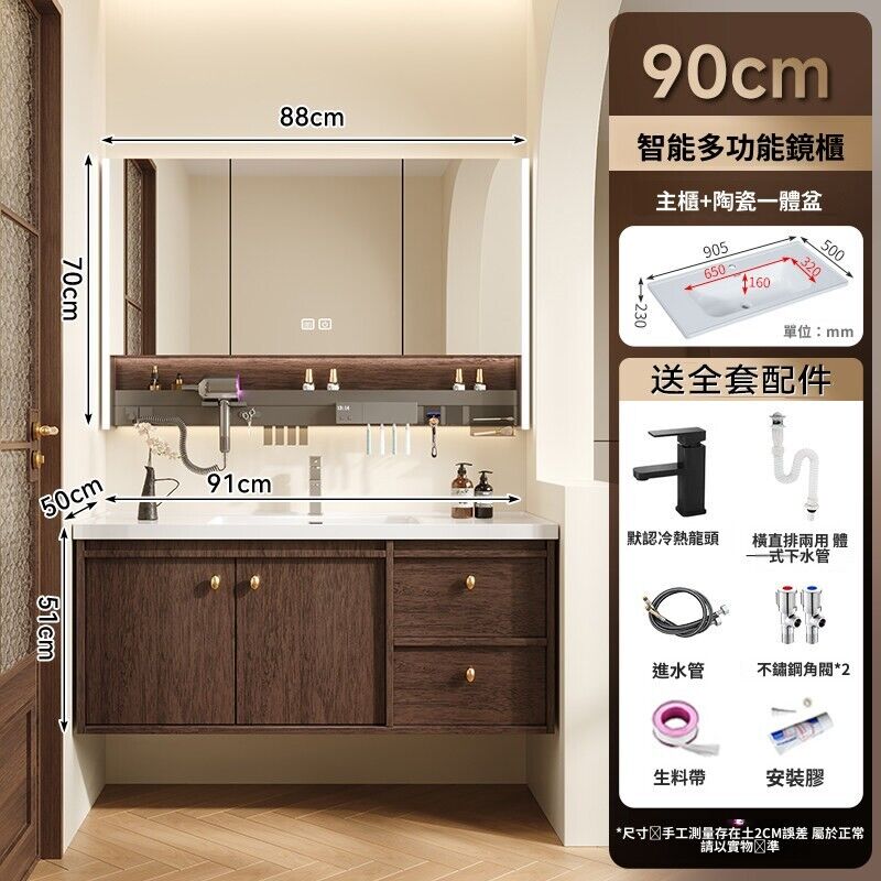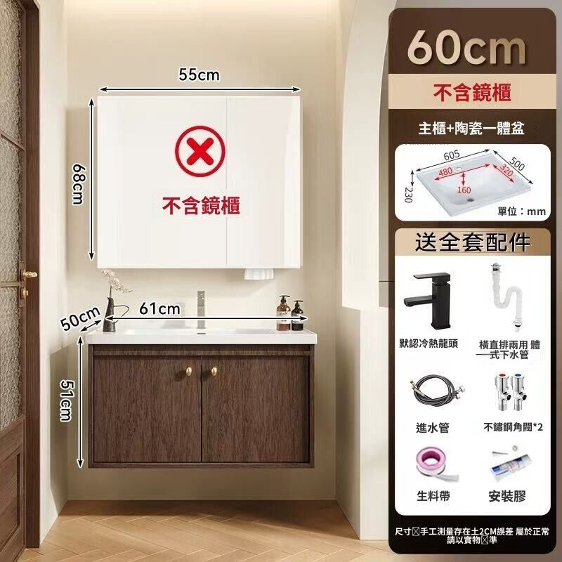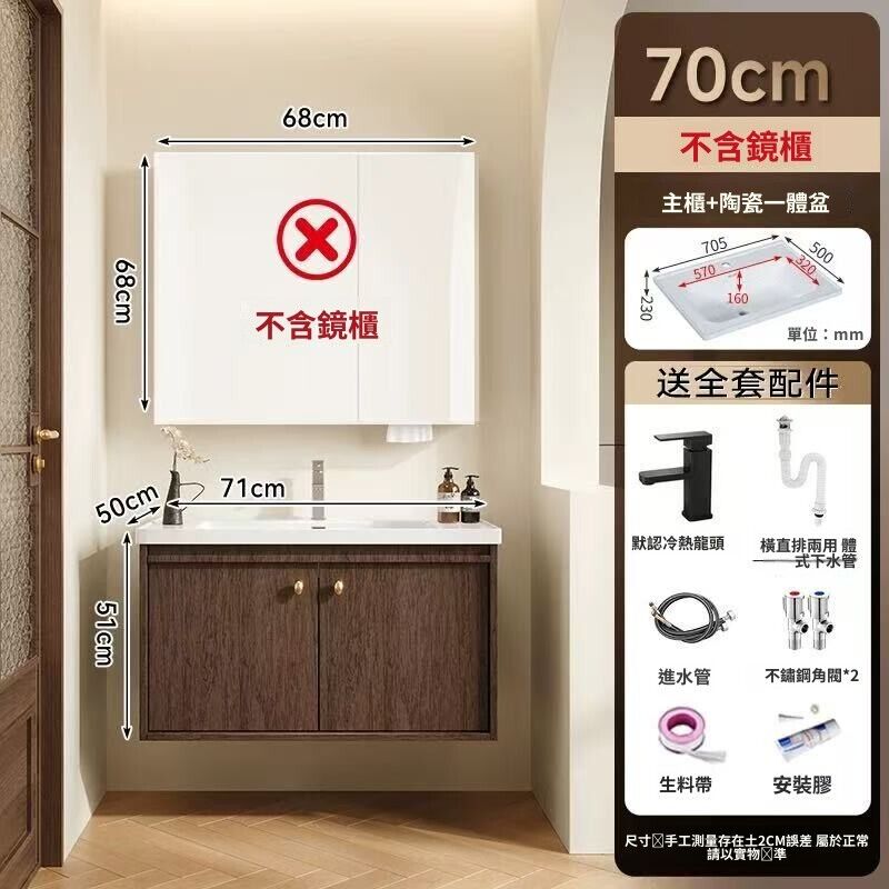 輕氧❤️ 中古風蜂窩鋁浴室櫃陶瓷一體盆組合衛生間帶抽屜款胡桃實木洗手臺 dfc