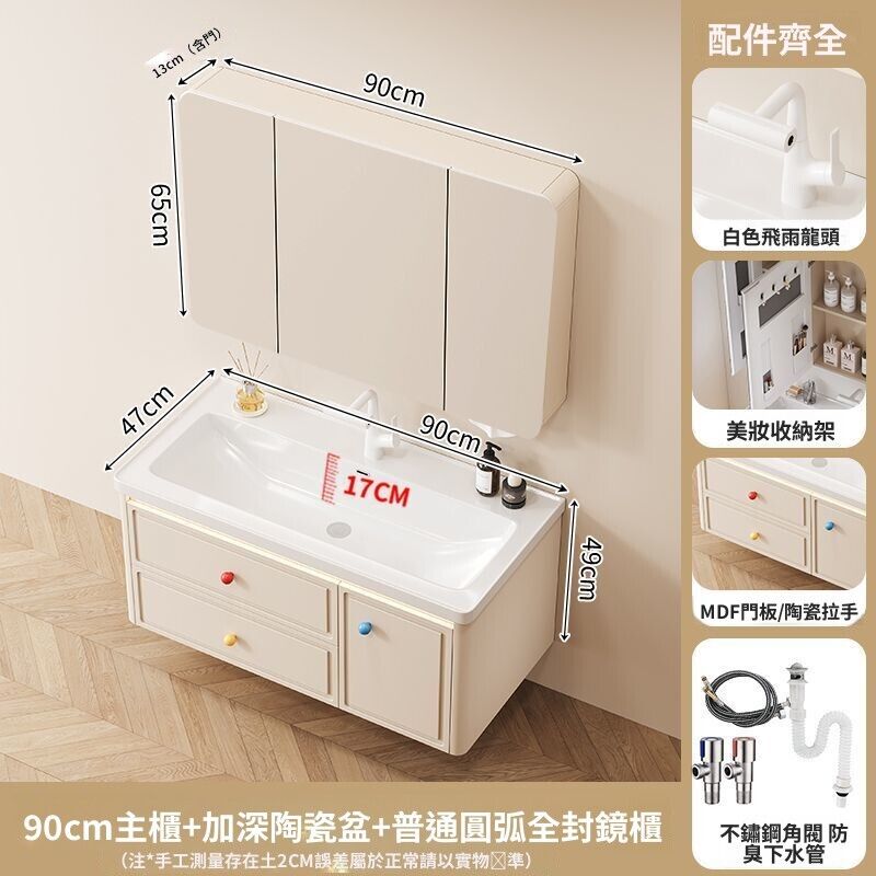 輕氧❤️ 法式多巴胺風格蜂窩鋁浴室櫃陶瓷一體盆組合帶感應燈洗手臺衛浴櫃 ebf
