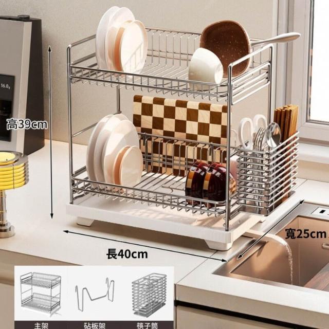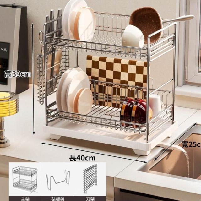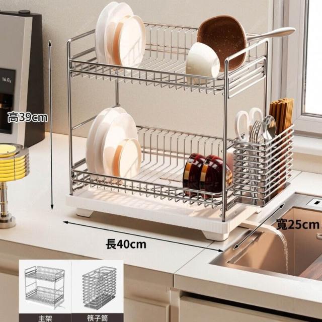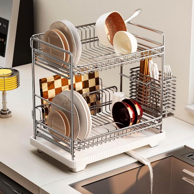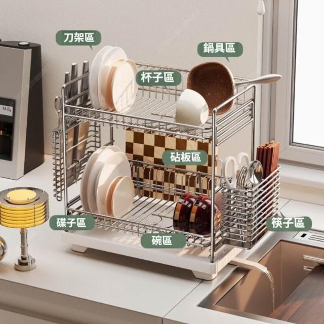 輕氧❤️ 304不銹鋼碗架廚房碗碟架瀝水架臺面多功能雙層碗盤收納架置物架 412