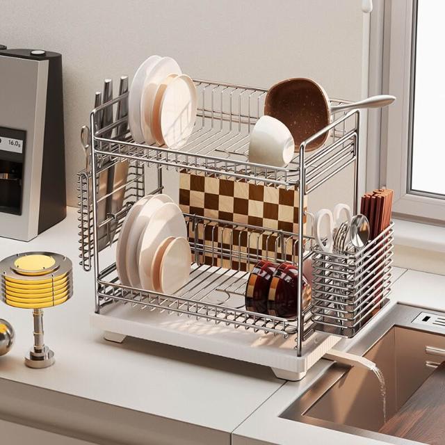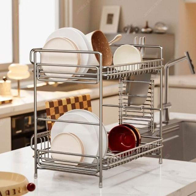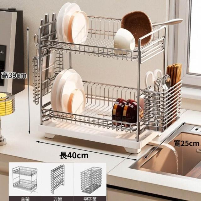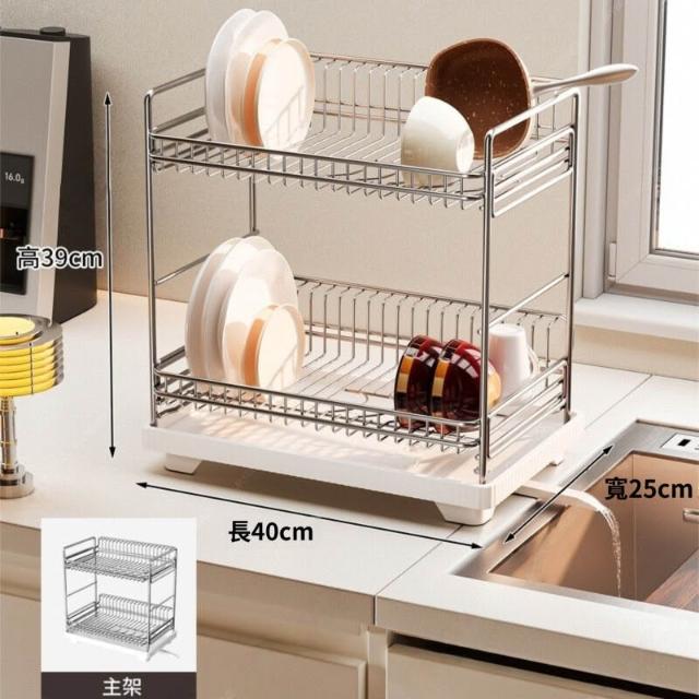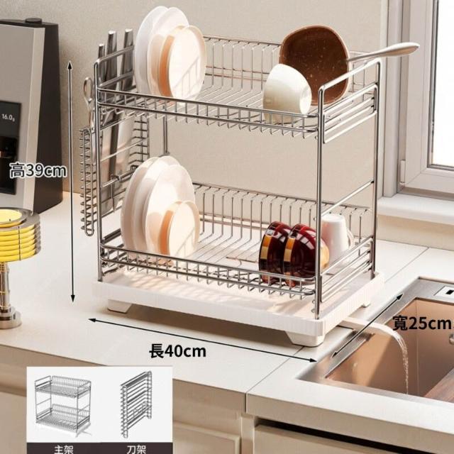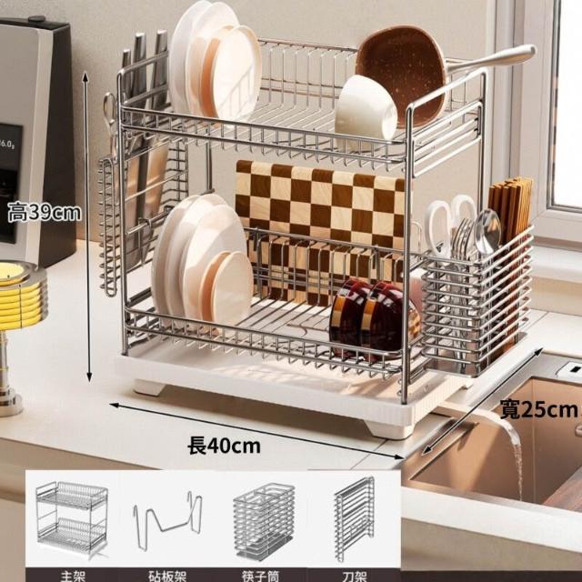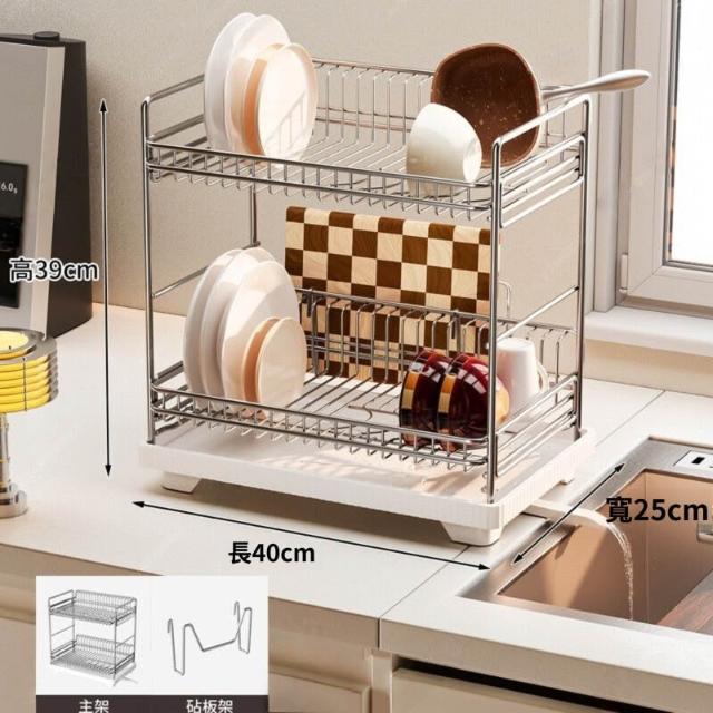 輕氧❤️ 304不銹鋼碗架廚房碗碟架瀝水架臺面多功能雙層碗盤收納架置物架 412