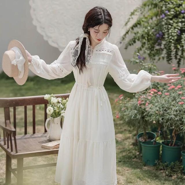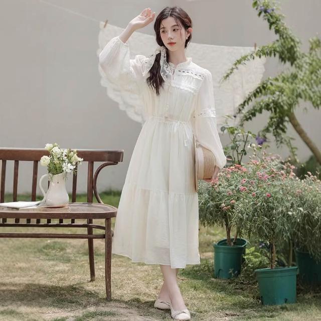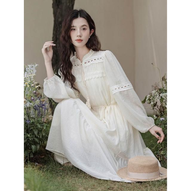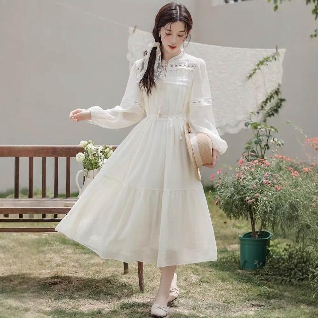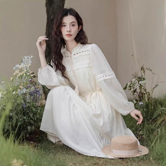 輕氧❤️ 靓依軒2026新款民族風好看白色裙子收腰波西米亞長袖連衣裙女春夏 7e7