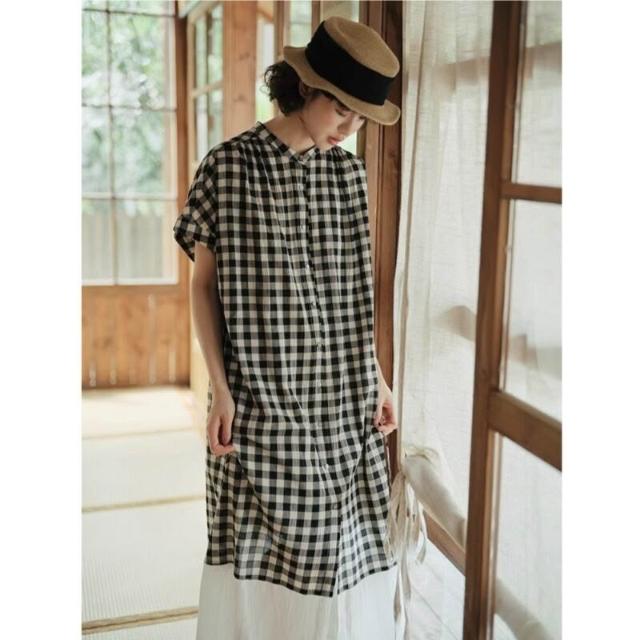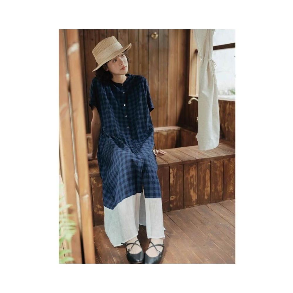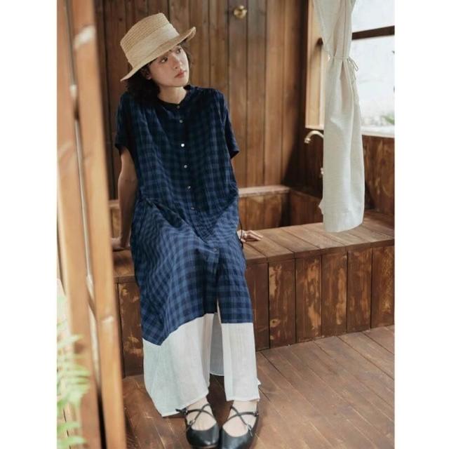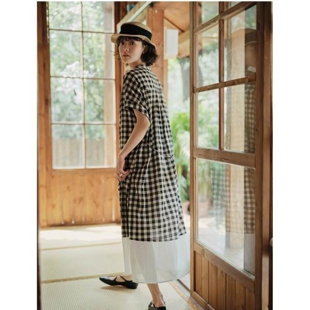 輕氧❤️ 2025夏季新款全棉格子拼接連衣裙文藝休閑松馳感日系風格穿搭裙子 66b