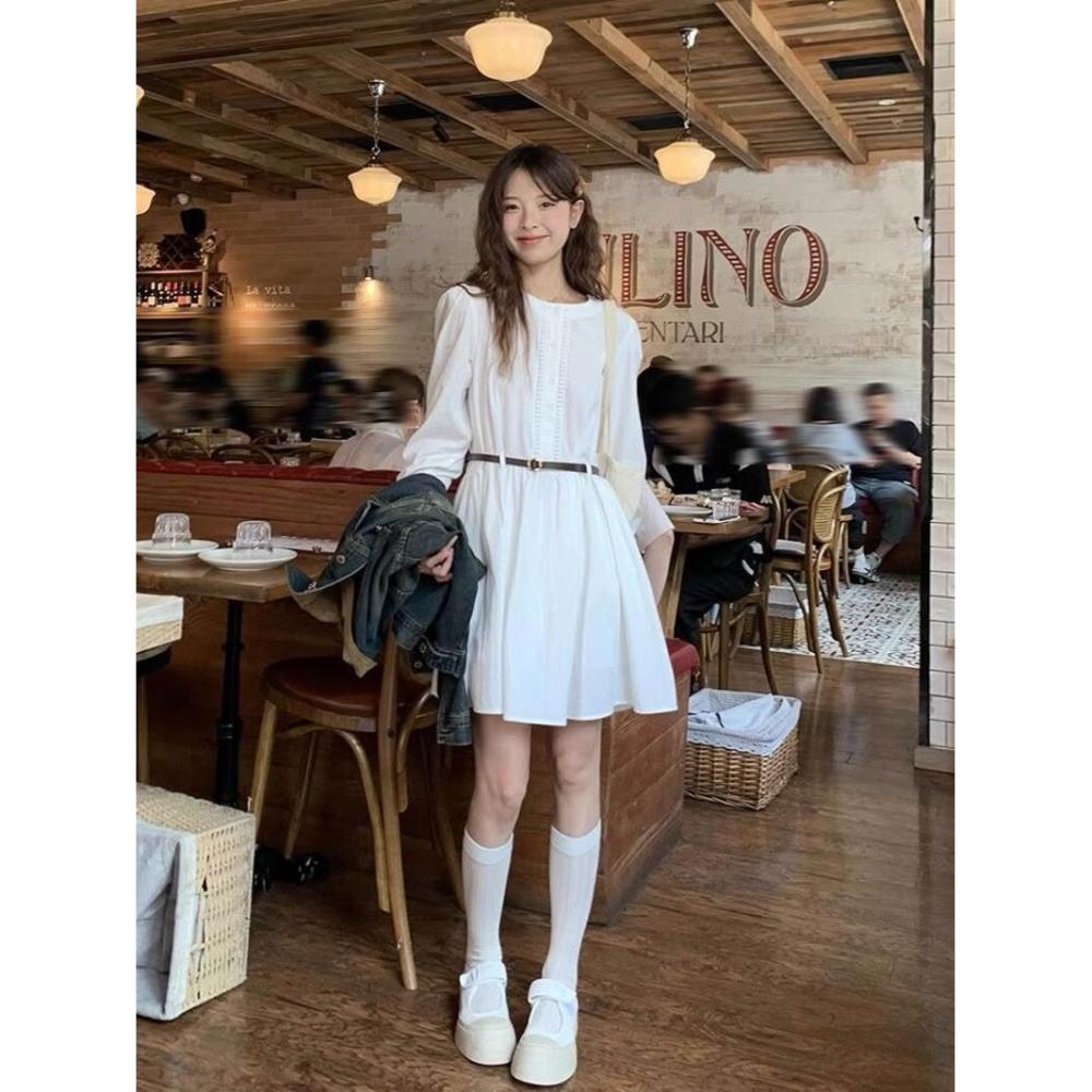 輕氧❤️ 法式小白裙清純連衣裙2025年秋冬新款韓版百搭日系裙子女 746