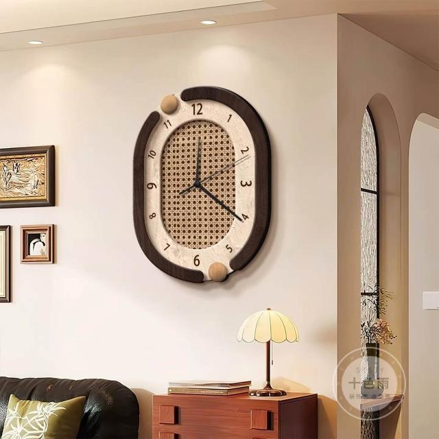 輕氧❤️ 中古風鐘表客廳裝飾畫新款高級感家用餐廳時鐘創意掛墻復古掛鐘畫 46d
