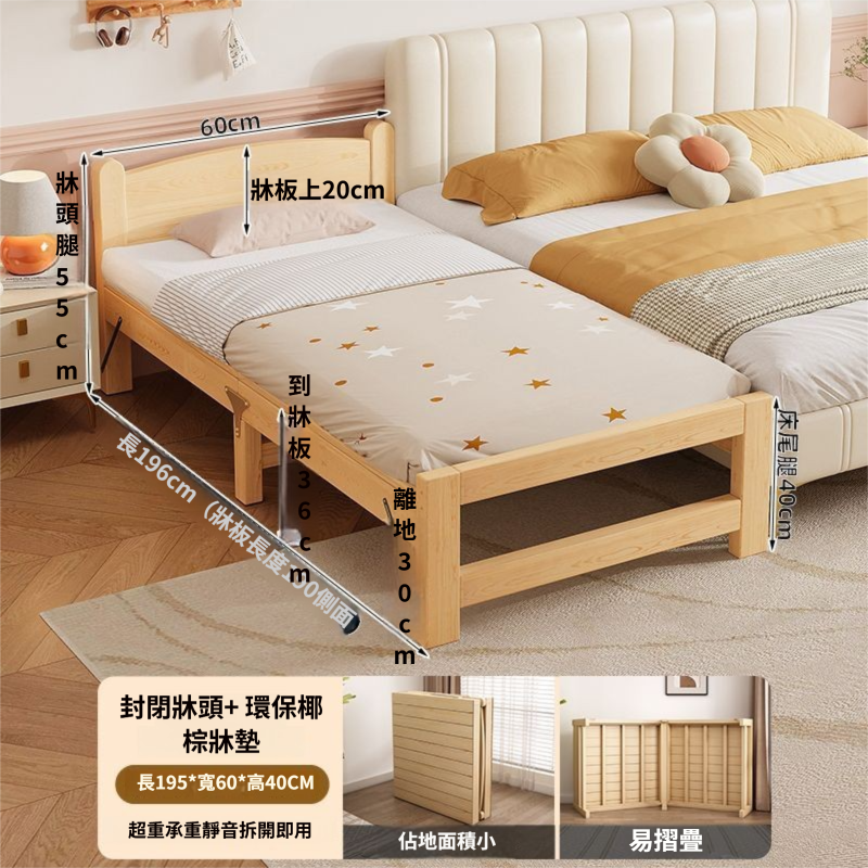 輕氧❤️ 實木折疊床家用兒童拼接床嬰兒床單人床雙人床辦公室出租房午休床 76b