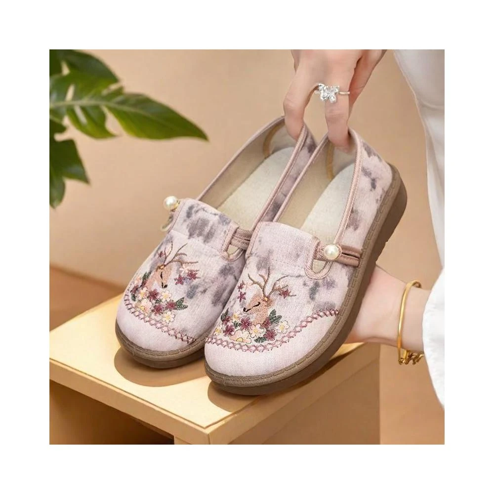 輕氧❤️ 2025新款中國風老北京布鞋女民族繡花鞋媽媽新中式樂福鞋復古女鞋 40f