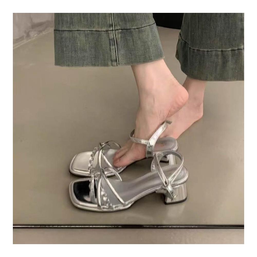輕氧❤️ 絕美仙女風銀色涼鞋女款2026夏季新款氣質高跟鞋粗跟配裙子羅馬鞋 65f