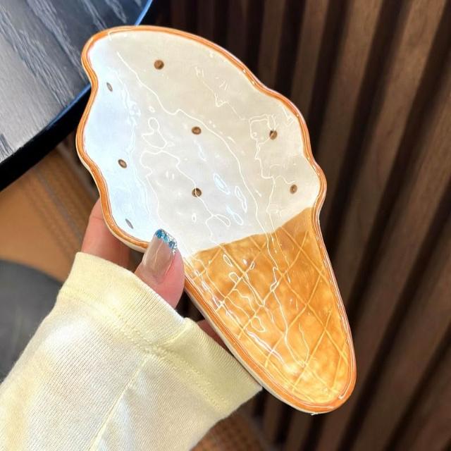 輕氧❤️ 可愛卡通草莓冰淇淋家用碗盤套裝盤子面碗浮雕湯盤餐具沙拉草帽盤 a21