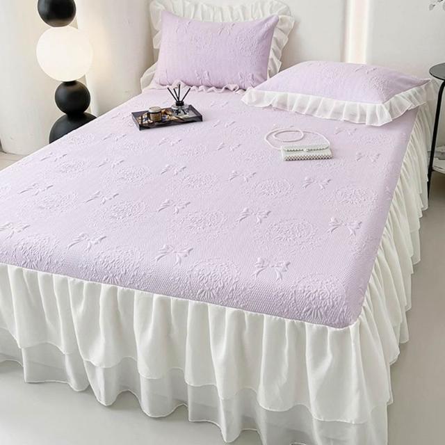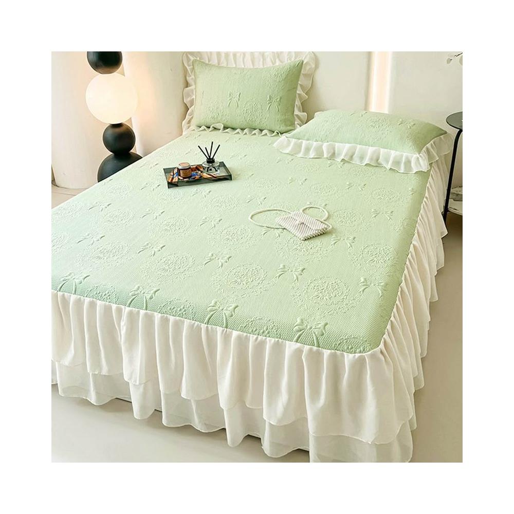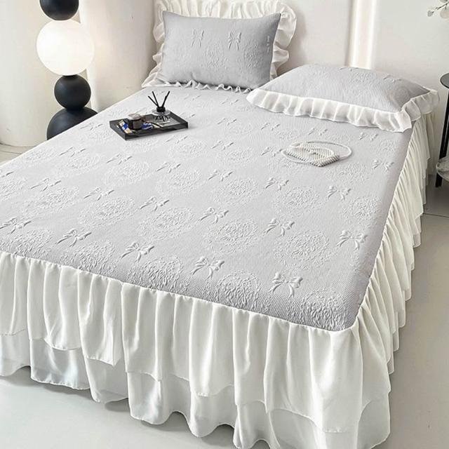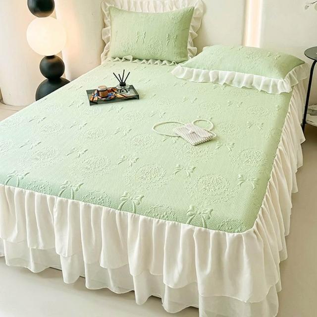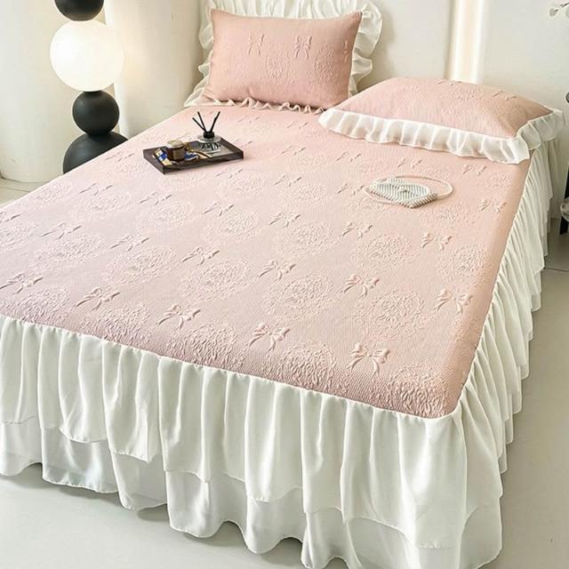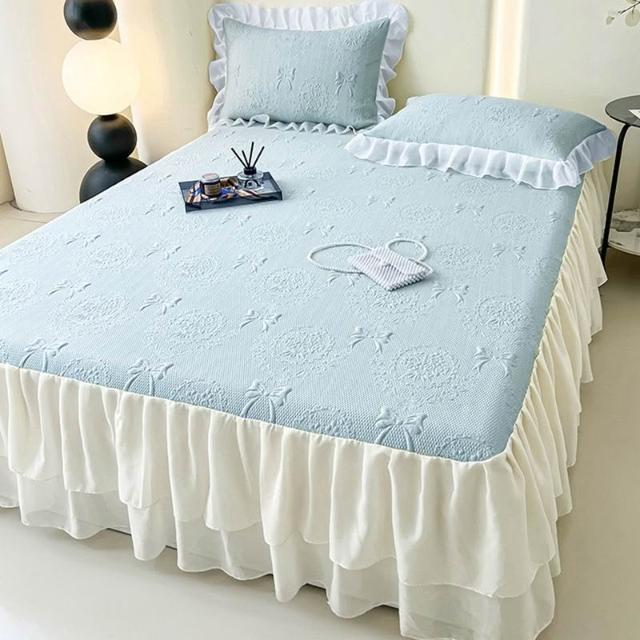 輕氧❤️ ins公主風床裙款冰豆豆涼席三件套a類提花冰絲夏季家用涼感軟席子 c6c