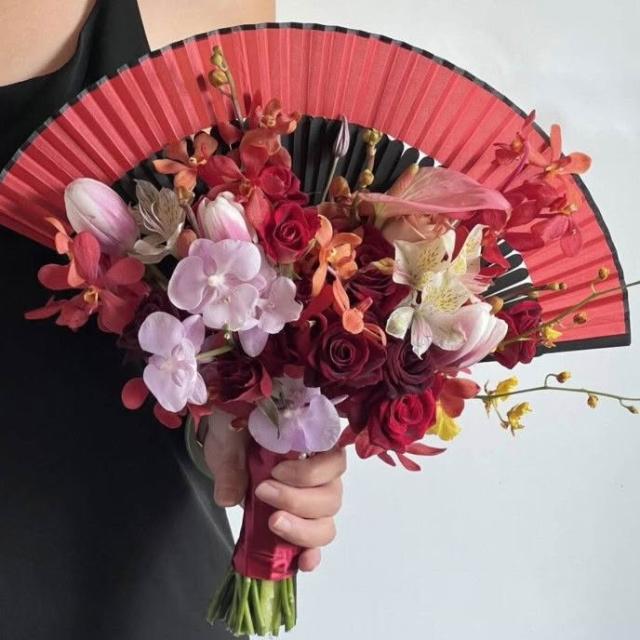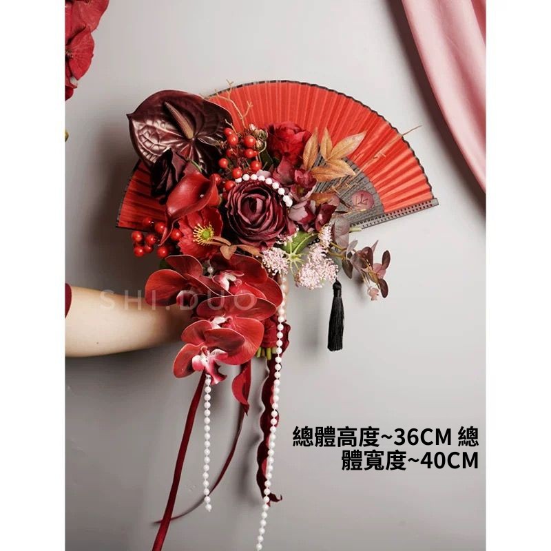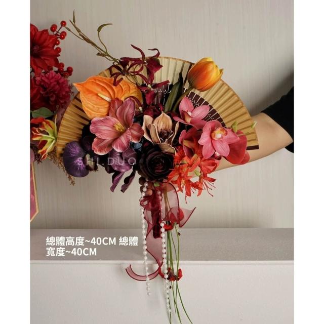輕氧❤️ 中式折扇手捧花新娘結婚創意仿真花旗袍秀禾攝影道具婚房裝飾擺放 e33