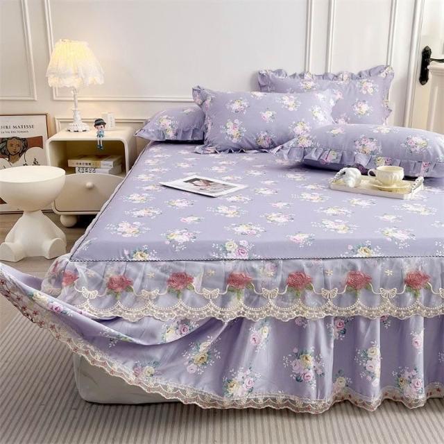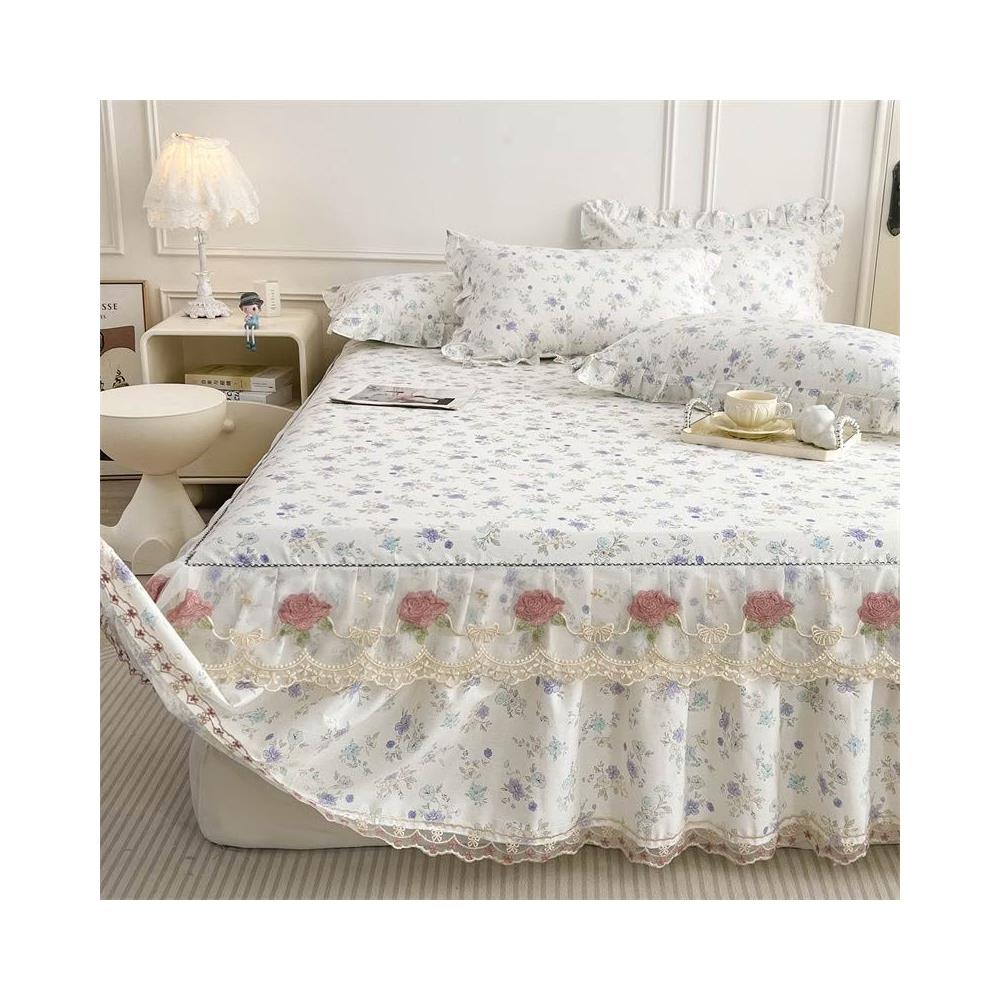 輕氧❤️ 韓版蕾絲花邊公主純棉床裙三件套春秋全棉床罩床墊防滑單件防塵套 1ef