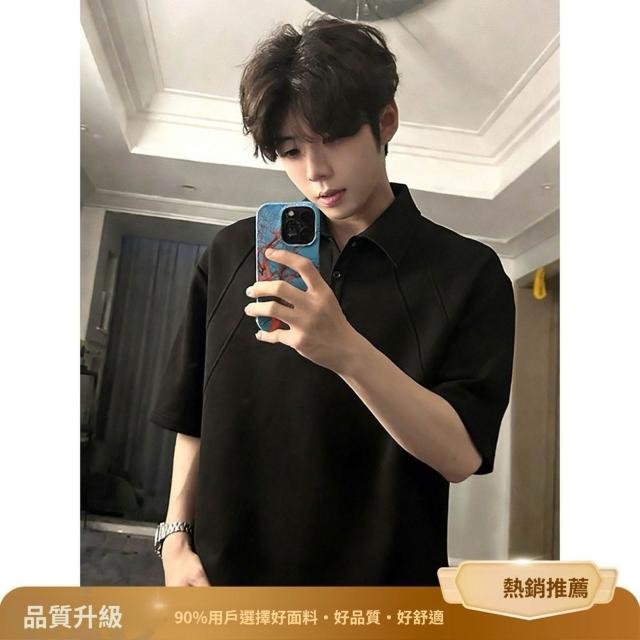 輕氧❤️ 白花灰美式翻領短袖Polo衫男款夏季新款boxy版型t恤高級感半截袖 96a