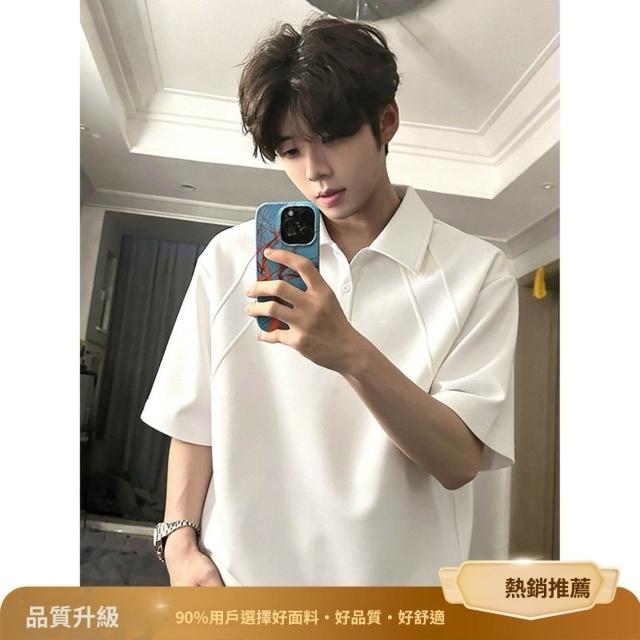 輕氧❤️ 白花灰美式翻領短袖Polo衫男款夏季新款boxy版型t恤高級感半截袖 96a