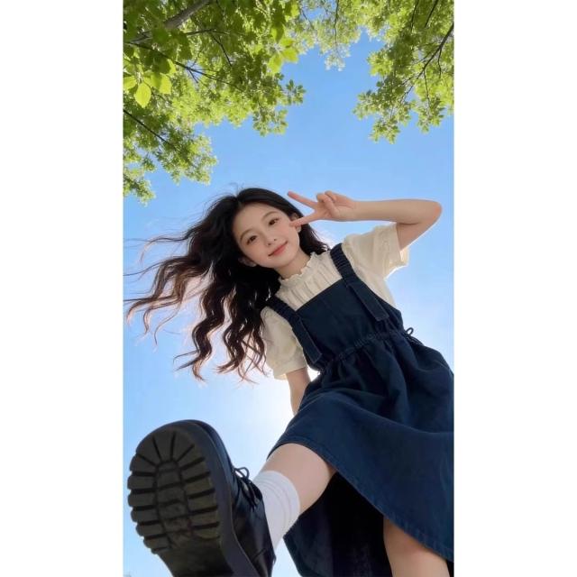 輕氧❤️ 女童套裝夏季牛仔背帶連衣裙短袖襯衫兩件套中大女童學院風長裙子 bc9