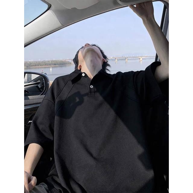 輕氧❤️ 黑色短袖POLO衫男款夏季青少年重磅半袖衣服2026新款寬松男士T恤 3ca