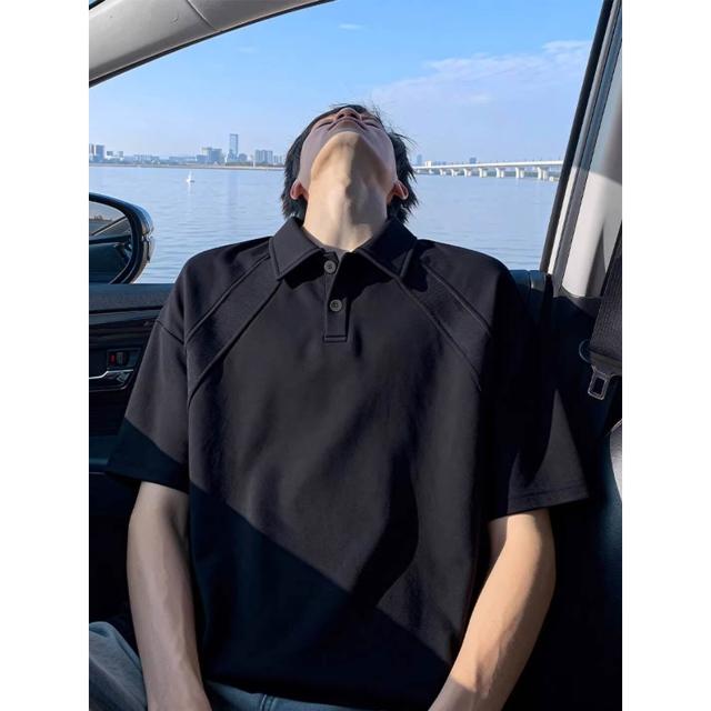 輕氧❤️ 黑色短袖POLO衫男款夏季青少年重磅半袖衣服2026新款寬松男士T恤 3ca
