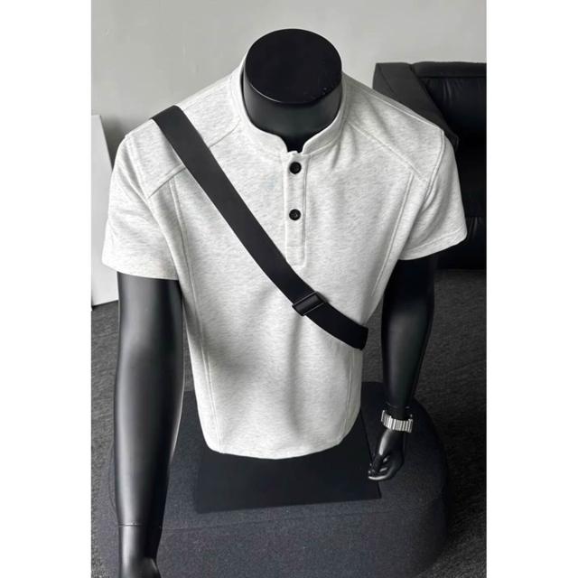 輕氧❤️ 白色亨利領短袖Polo衫男夏季修身廓形立領t恤潮牌boxy版型半截袖 ed9