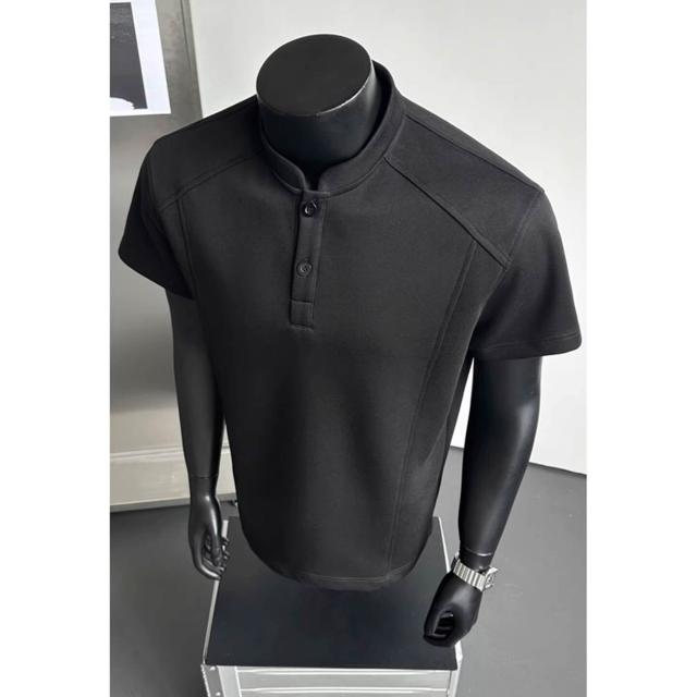 輕氧❤️ 白色亨利領短袖Polo衫男夏季修身廓形立領t恤潮牌boxy版型半截袖 ed9