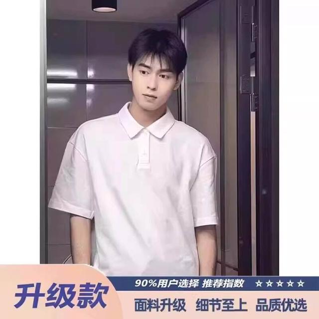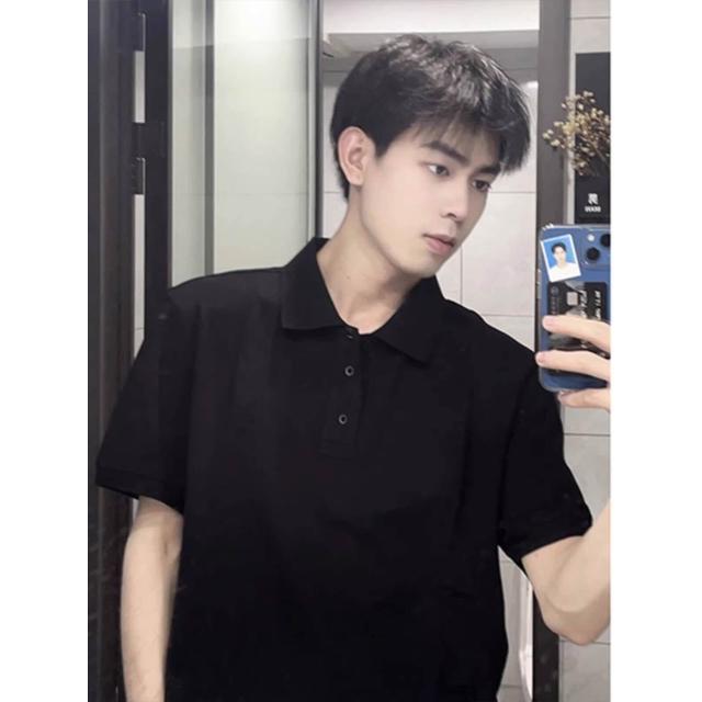 輕氧❤️ 純黑色短袖polo衫男式夏季高級感痞帥翻領t恤美式重磅正肩五分袖 01b