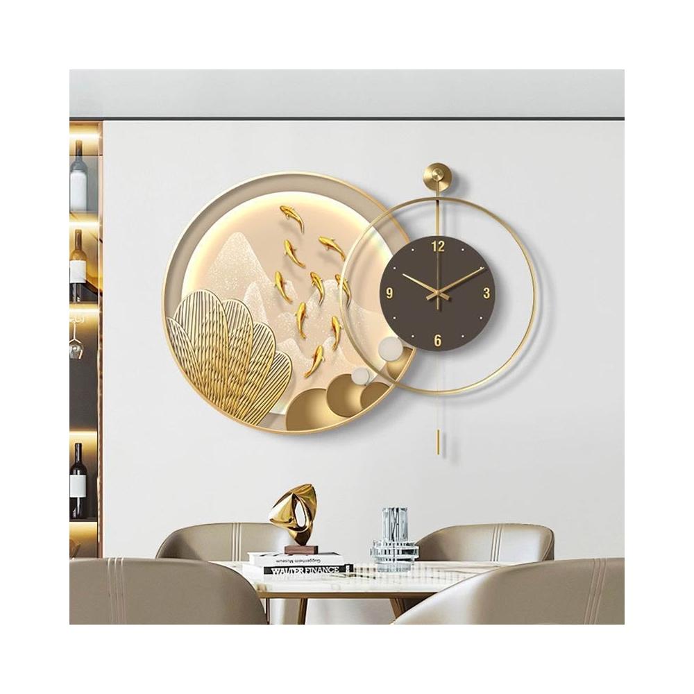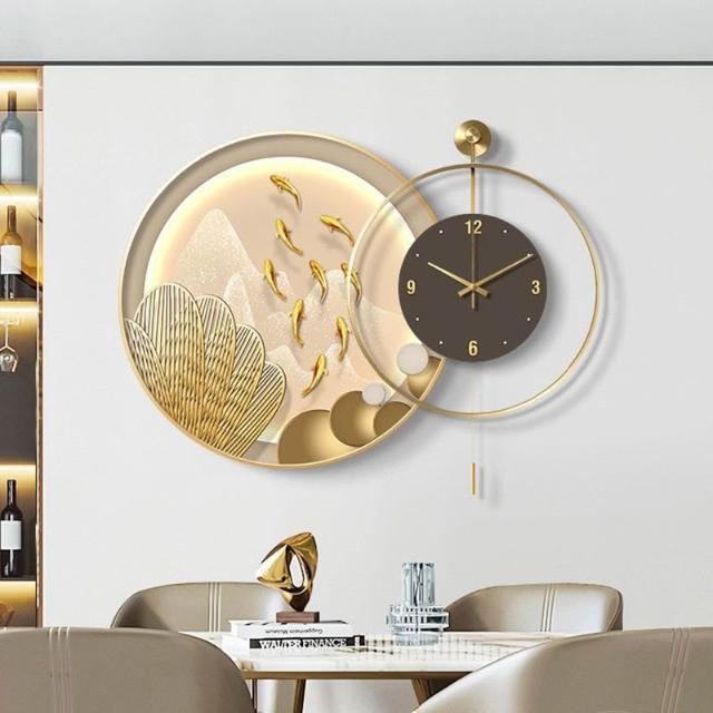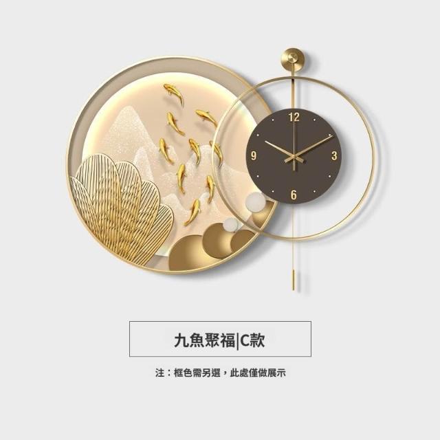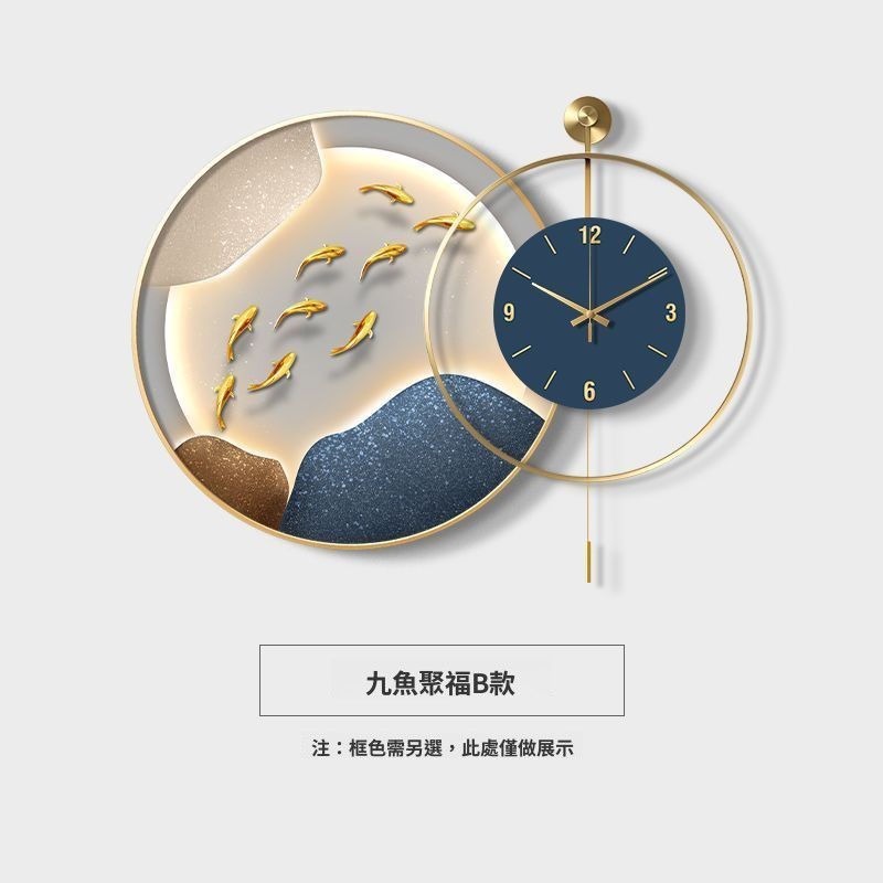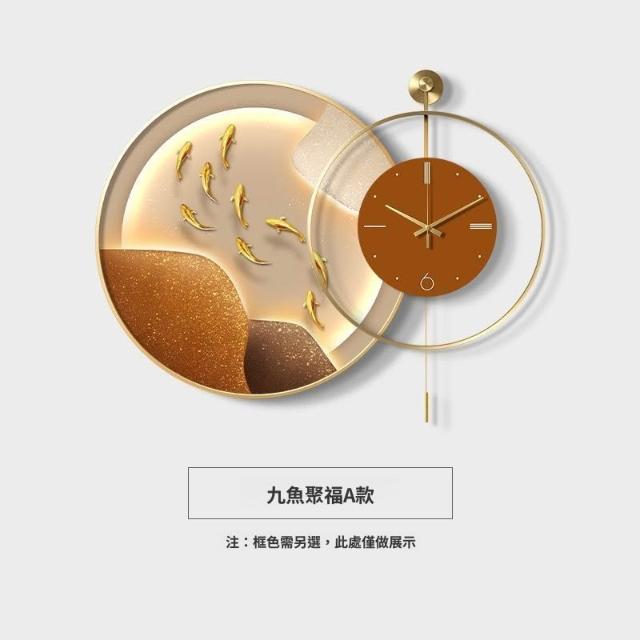 輕氧 九魚圖餐廳靜音高檔客廳鐘表掛鐘現代輕奢飯廳背景墻時鐘組合畫 4f6