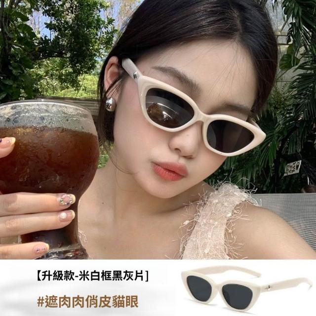 輕氧 復古貓眼墨鏡女2026新款高級jennie同款窄框太陽鏡防紫外線 94b