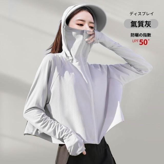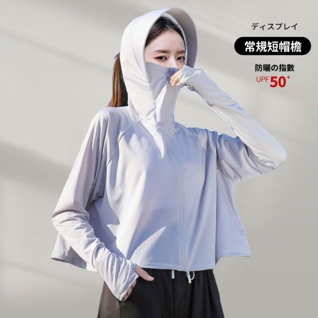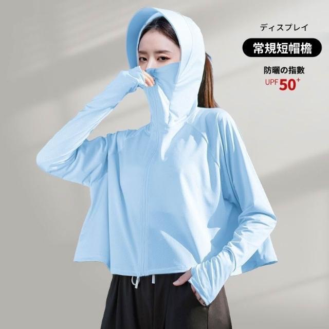 輕氧 女士夏季防曬衣戶外休閑防紫外線可拆帽檐冰絲原紗輕薄透氣防曬服 d97