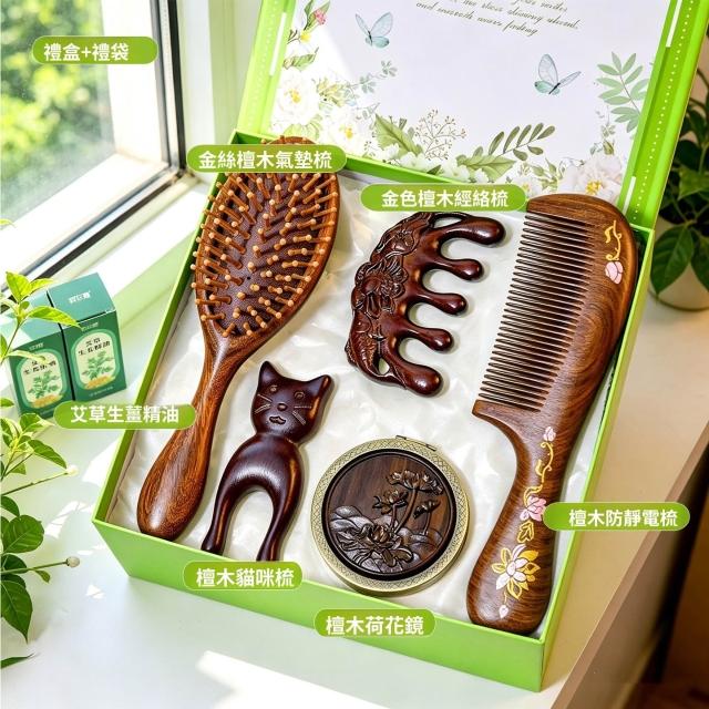輕氧 檀木按摩梳子禮盒生日禮物女生伴手禮母親節送媽媽員工實用護士節 c27