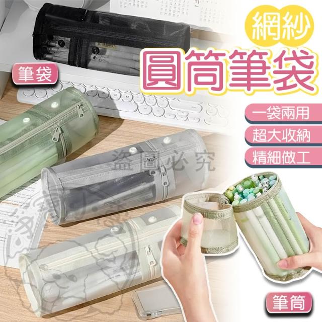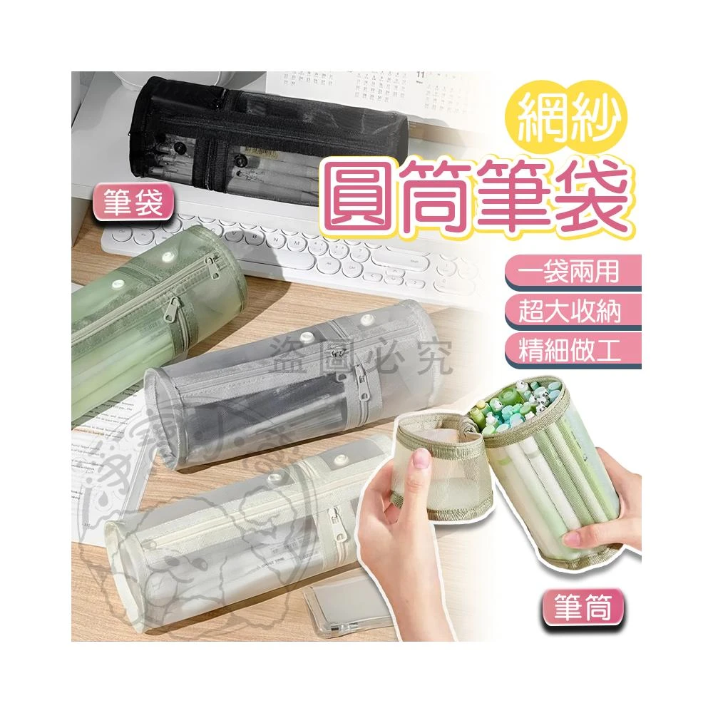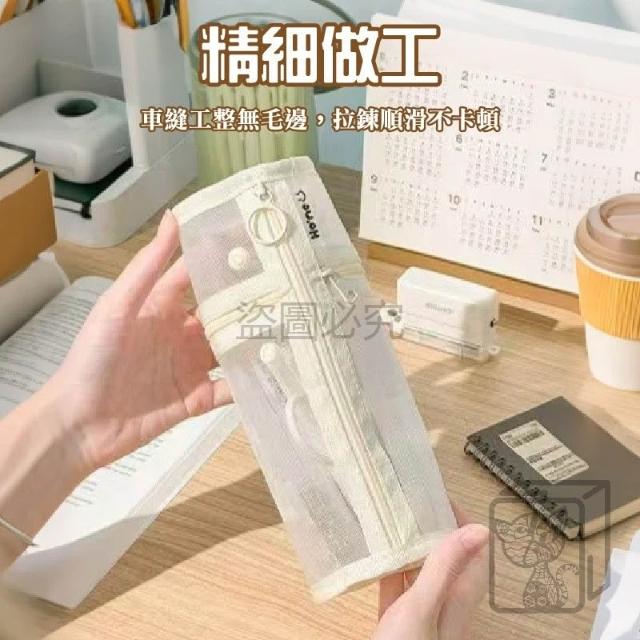 🔥一袋兩用🔥圓筒筆袋立式筆袋 網紗筆袋 文具收納袋 大容量筆袋 透明筆袋 便攜筆袋 文具袋 鉛筆盒 收納袋 鉛筆袋