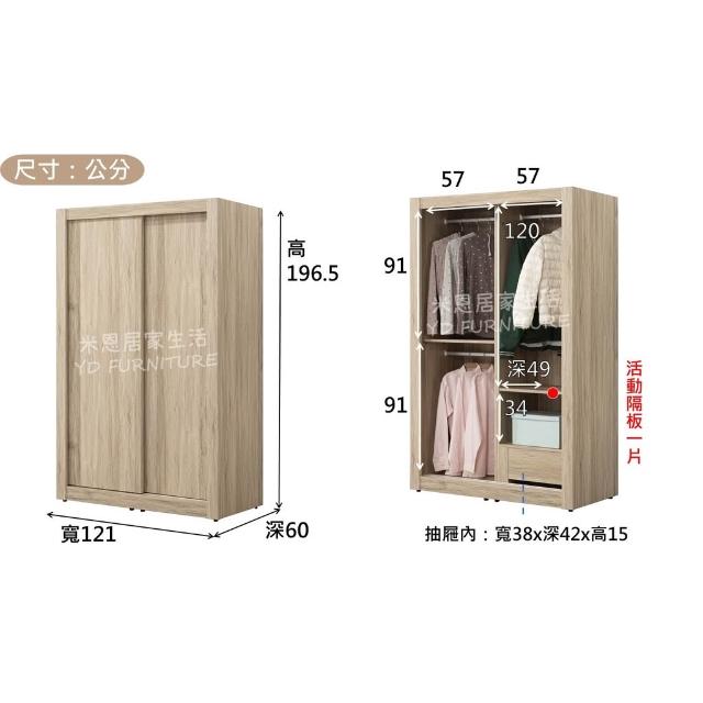 布加迪4尺滑門衣櫃 寬121公分 4尺衣櫥 原木色衣櫃 無內鏡 YD米恩居家生活