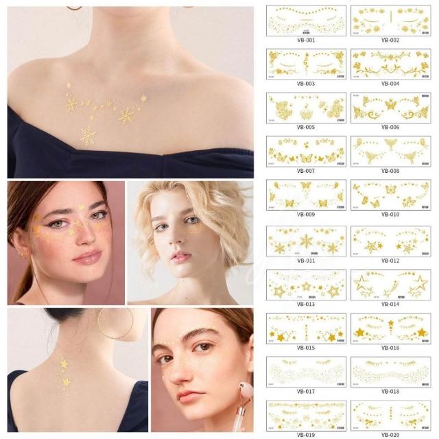 臉部貼紙 紋身貼紙 貼紙 燙金貼紙 紋身貼 臉貼 燙金 金色貼紙 妝容貼紙 妝容貼 雀斑 防水 美式 歐美