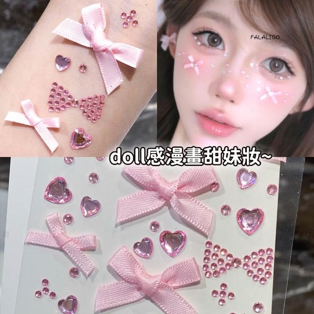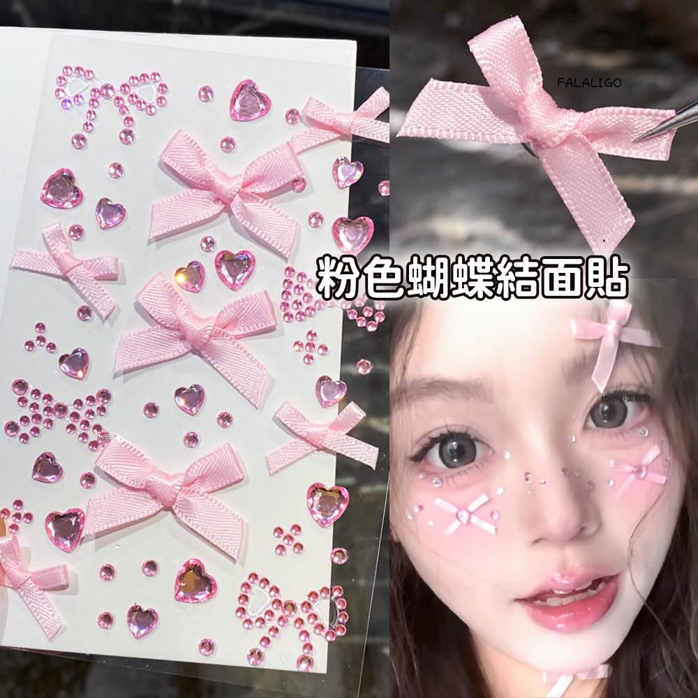 『天天秒發』 蝴蝶結面貼 臉上貼紙 面部裝飾 化妝貼紙 粉蝴蝶結臉貼 音樂節化妝臉上飾品貼鑽臉部水鑽貼紙裝飾應援妝貼