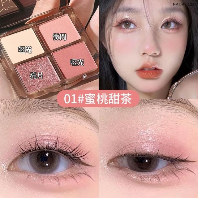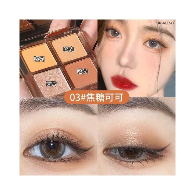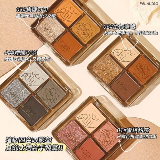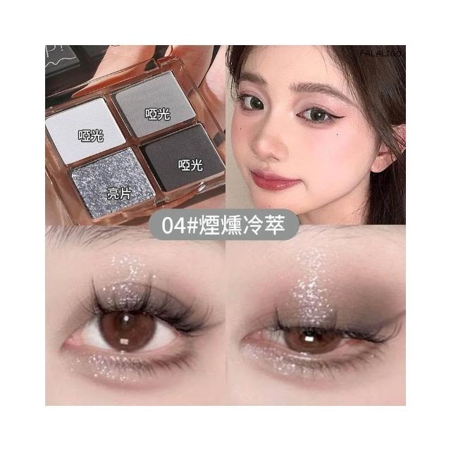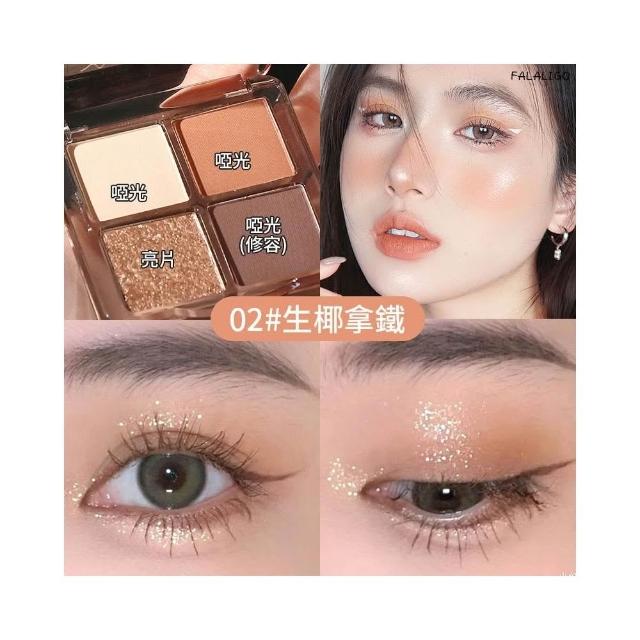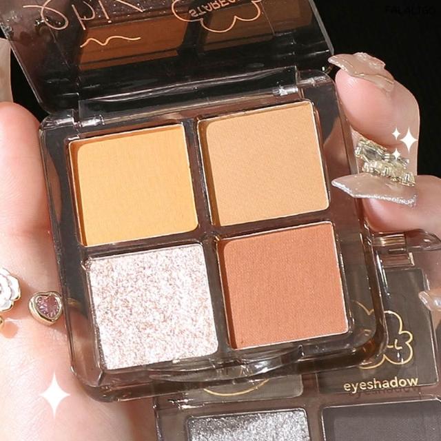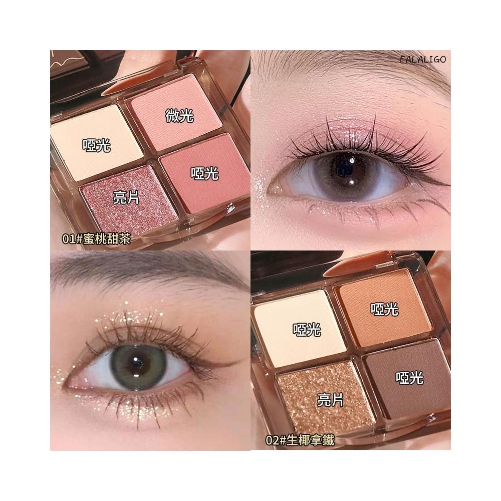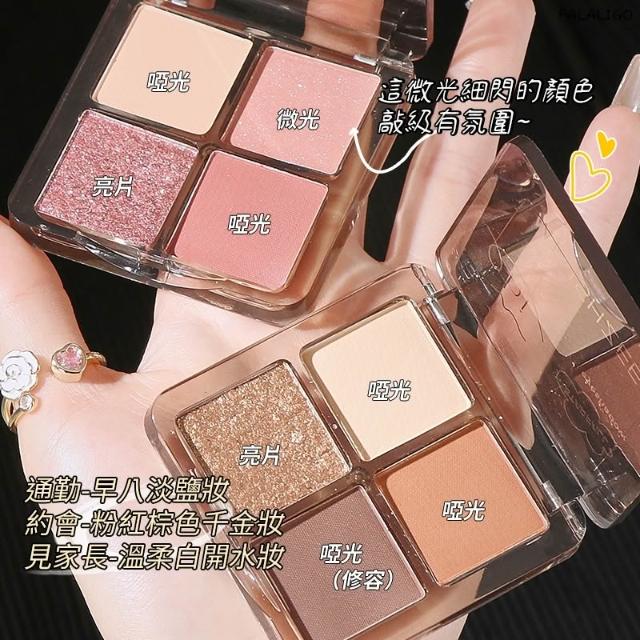 『天天秒發』 眼影 眼影盤 四色眼影 珠光 霧面 臥蠶 茗希芝四色眼影盤粉棕大地色煙熏盤啞光珠光爆閃便攜新手正品