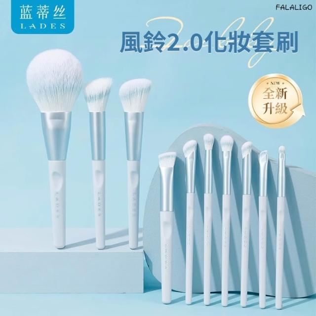 『天天秒發』 10支刷具組 藍風鈴化妝刷 套裝刷具 刷子 LADES藍蒂絲藍風鈴10支化妝刷套裝眼影遮瑕散粉腮紅高光刷子