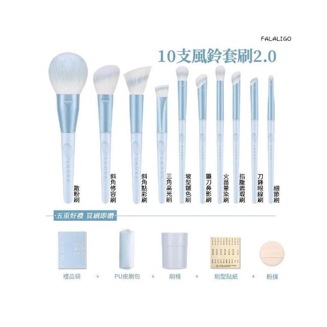 『天天秒發』 10支刷具組 藍風鈴化妝刷 套裝刷具 刷子 LADES藍蒂絲藍風鈴10支化妝刷套裝眼影遮瑕散粉腮紅高光刷子
