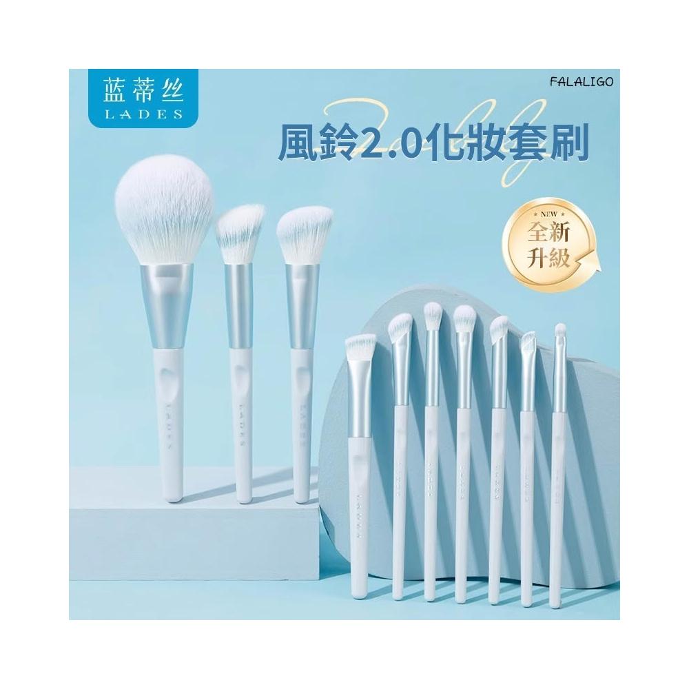 『天天秒發』 10支刷具組 藍風鈴化妝刷 套裝刷具 刷子 LADES藍蒂絲藍風鈴10支化妝刷套裝眼影遮瑕散粉腮紅高光刷子