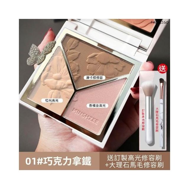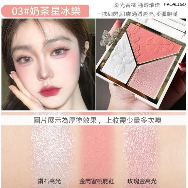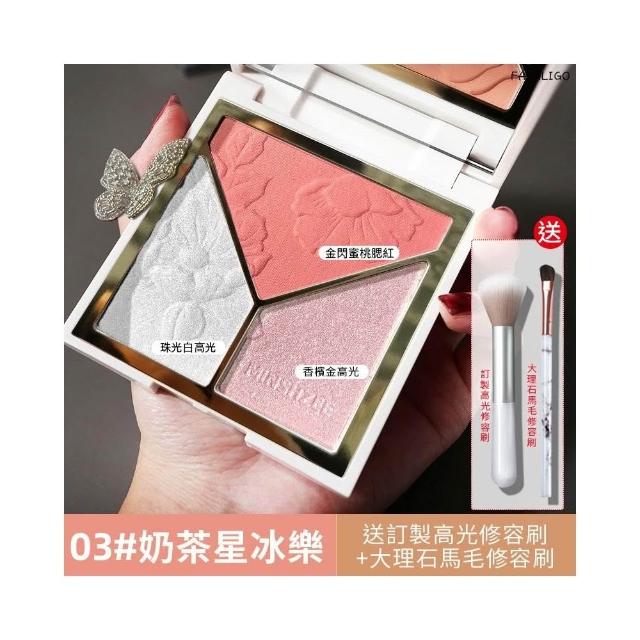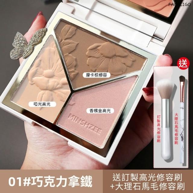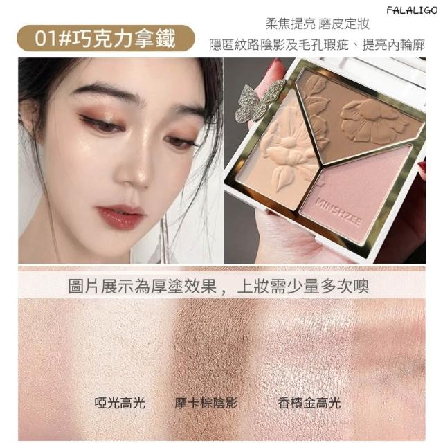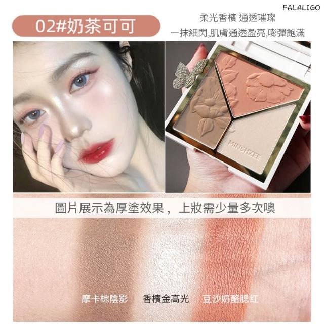 『贈腮紅刷』 高光盤 修容盤 三色高光修容盤 三色高光修容盤鼻影陰影側影珠光啞光修容腮紅高光一體盤MINSHZEE