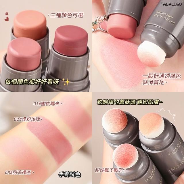 『天天秒發』 腮紅 腮紅棒 霧面腮紅 腮紅膏 茗希芝雙頭元氣腮紅棒蘑菇頭膨脹色自然修容霧面低飽和顯白便捷女韓系腮紅