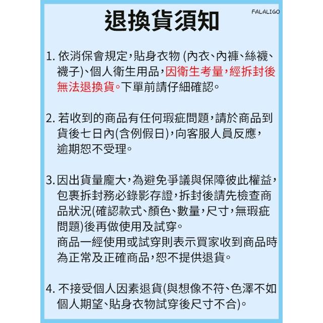 - 個人衛生用品除商品本身有瑕疵外,未拆封商品仍享有十天猶豫期之退貨權利。但已拆封 (如剪標、下水等情形…),依據《通訊交易解除權合理例外情事適用準則》第二條規定,商店無法接受退換貨。