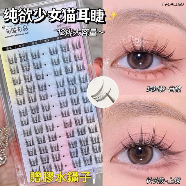 『萌睫尚品』 貓耳假睫毛 貓耳睫毛 假睫毛 分段式 三部曲太陽花假睫毛魚尾毛 萌睫尚品女日常假睫毛模擬仙子毛眼睫毛自然款
