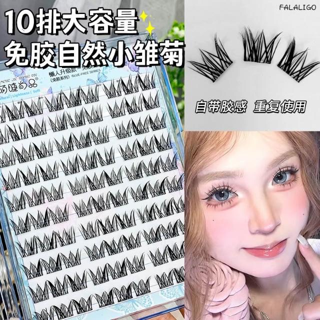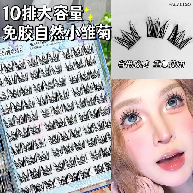 『萌睫尚品』 假睫毛 免膠款 小雛菊 上鏡自然大容量10排懶人免膠免卸自粘自然小雛菊假睫毛單簇分段新手上鏡漫畫睫毛