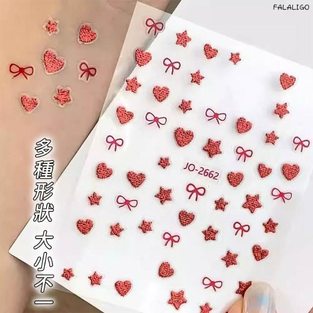『天天秒發』 妝容貼紙 臉貼 彩妝貼紙 細閃貼紙 美甲貼紙紅色愛心貼紙跨年妝臉上飾品臉部化妝舞台蝴蝶結貼鑽音樂節派對
