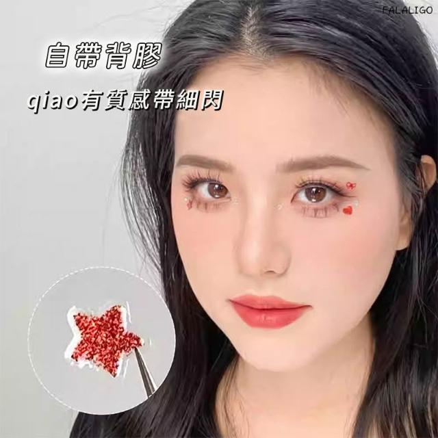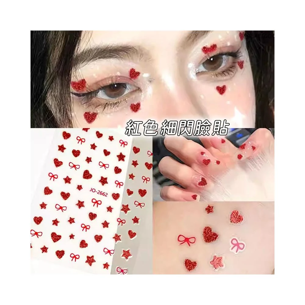 『天天秒發』 妝容貼紙 臉貼 彩妝貼紙 細閃貼紙 美甲貼紙紅色愛心貼紙跨年妝臉上飾品臉部化妝舞台蝴蝶結貼鑽音樂節派對