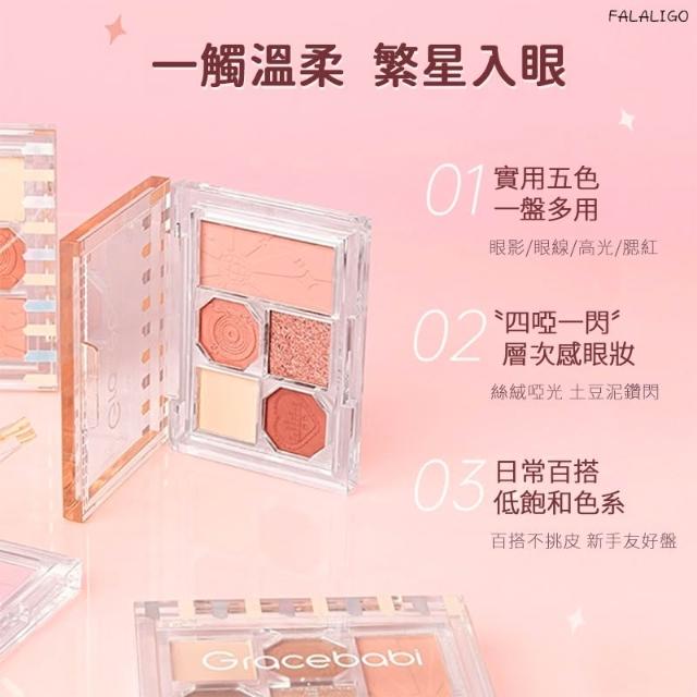 『天天秒發』 Gracebabi 眼影 眼影盤 霧面眼影 珠光眼影 彩妝盤 柔霧邃眸五色眼影盤啞光珠光偏光彩妝盤腮紅新手