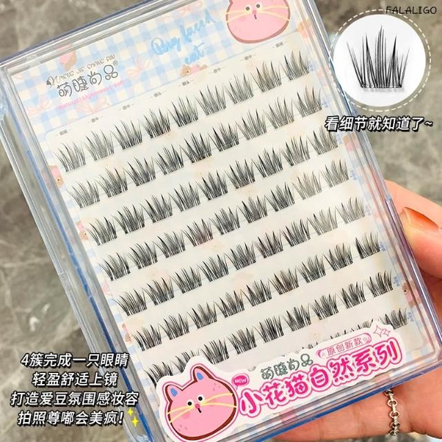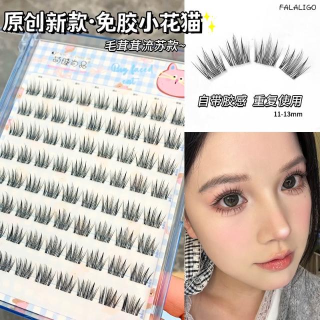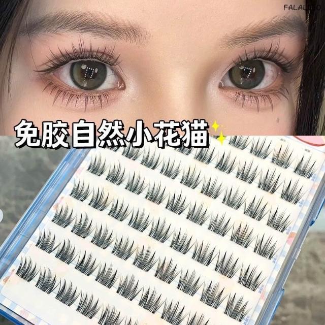 『天天秒發』 免膠假睫毛 假睫毛 小花貓假睫毛 眼睫毛 萌睫尚品大容量免膠小花貓假睫毛自然媽生單簇懶人新手自黏眼睫毛