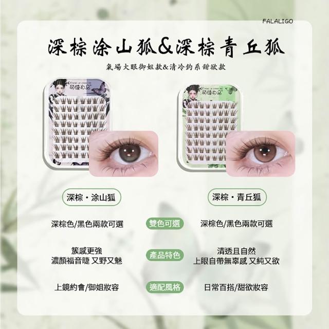 『天天秒發』 狐系假睫毛 中式狐系假睫毛 免膠假睫毛 假睫毛 免膠新中式深棕原創狐!萌睫尚品青丘涂山狐系上鏡斜飛假睫毛女