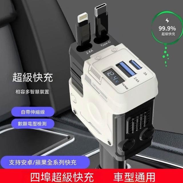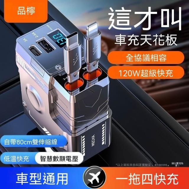 茂源優選車載充電器120W超級快充機甲款伸縮數據線一拖四車載充電器黑科技